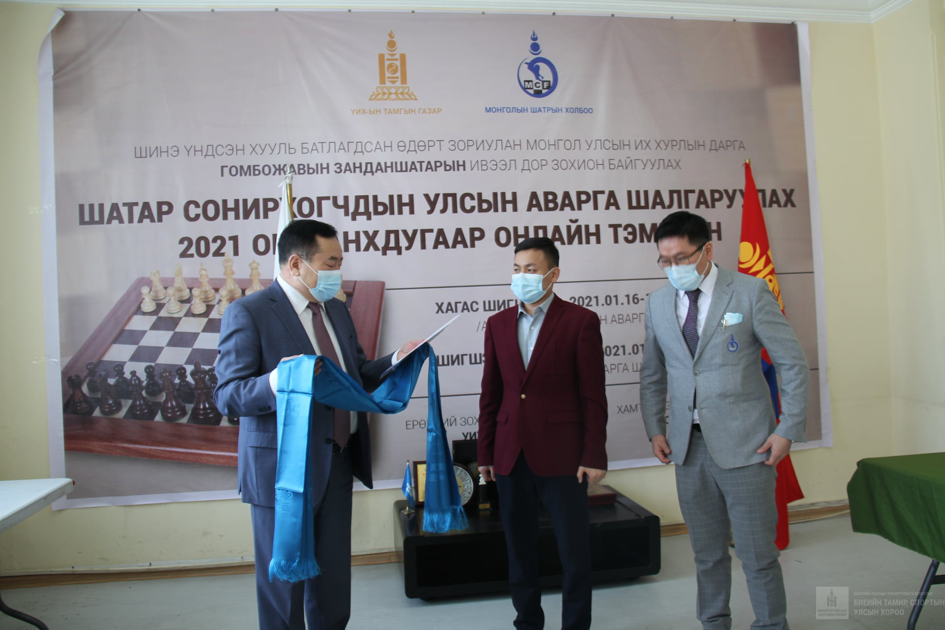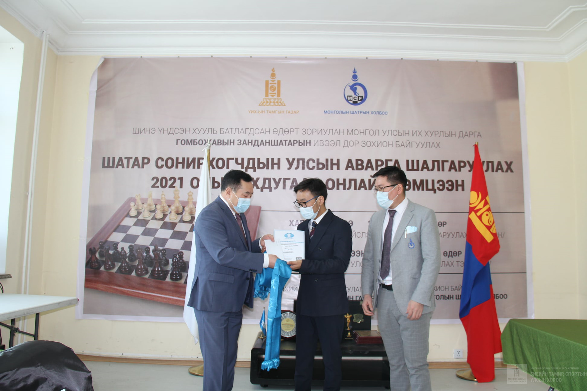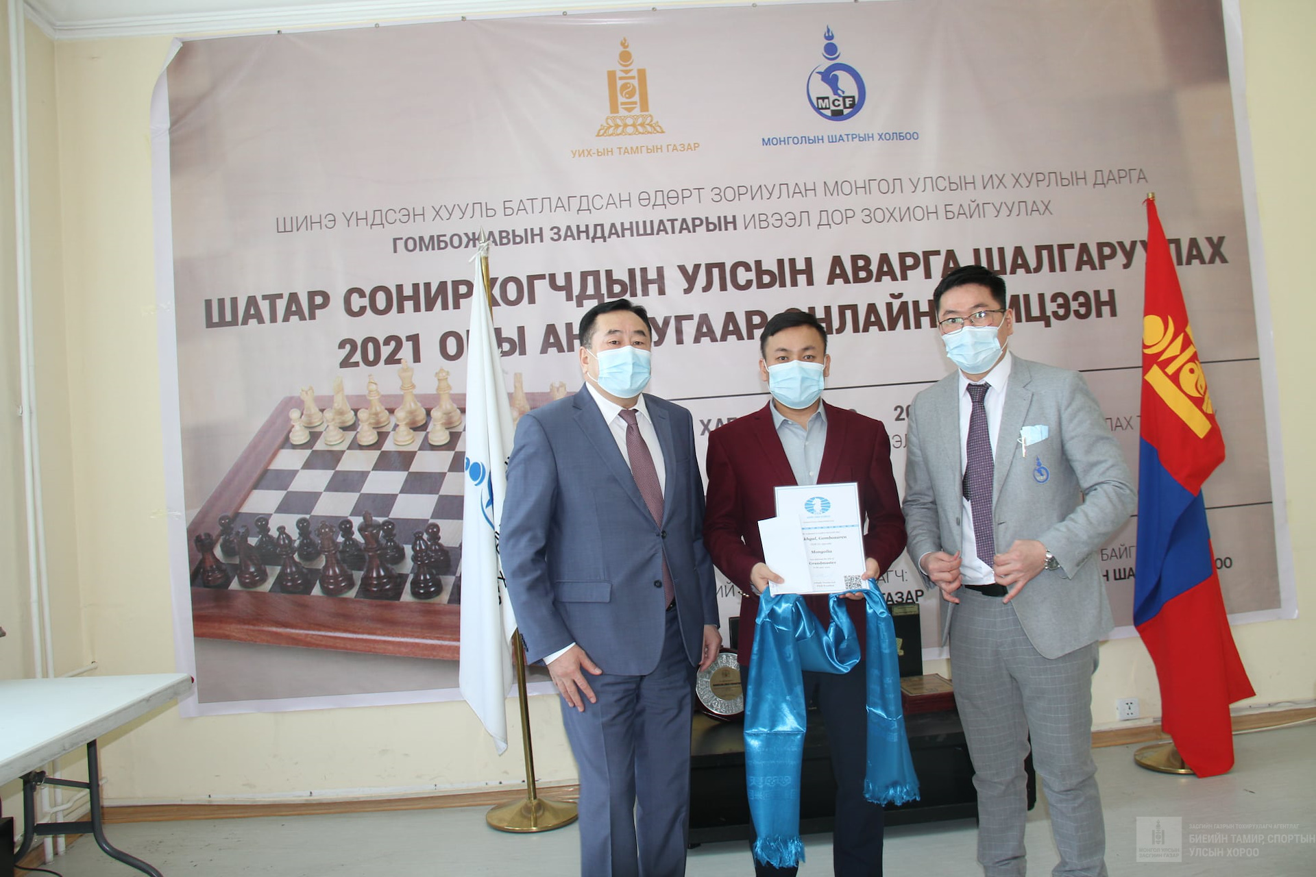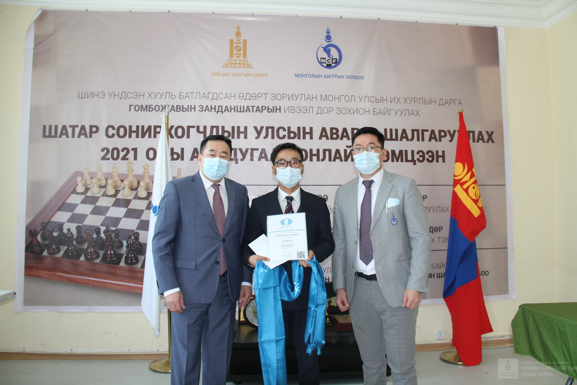 - "Өвөрхангай аймгийн харьяат, "Их заргач" шатрын клубын дасгалжуулагч, Их мастер Г.Мөнхгал Монгол Улсын 6 дахь их мастер, Өвөрхангай аймгийн 2 дахь их мастер, Хэнтий аймгийн харьяат, Шатрын спортын үндэсний шигшээ багийн тамирчин, Их мастер У.Насанжаргал Монгол Улсын 7 дахь их мастер, Хэнтий аймгийн анхны их мастер, Орхон аймгийн харьяат, Монголын хамгийн залуу Их мастер Д.Батсүрэн Монгол Улсын эрэгтэйчүүдийн 8 дахь их мастер, Орхон аймгийн анхны их мастер цолтон болж байна. Дэлхийн Шатрын Холбооны Конгрессын шийдвэрээр олгодог ИХ МАСТЕР гэдэг энэ эрхэм хүндтэй цолыг хүртсэн та нарын олон жилийн нөр их хөдөлмөр, багш нарын тань хичээл зүтгэл, аав, ээжийн тань таны төлөө болон Монголын төлөө цохилсон зүрх, шатрыг хөгжүүлэхэд оруулсан хувь нэмрийн илэрхийлэл юм. Алдар нэрээ тив дэлхийд олон удаа цууриатуулж, зорьсон зорилгоо дахин биелүүлэхийн ерөөлийг дэвшүүлж, сайн сайхныг хүсье! Та бүхний амжилт Монголын авьяаслаг хүүхдүүдийн Их мастер болох мөрөөдөлд гэрэл нэмж, олон их мастеруудыг араасаа дагуулсан булган сүүлтэй байх болтугай" гэж дурьдлаа.
