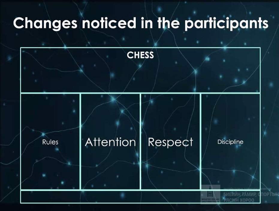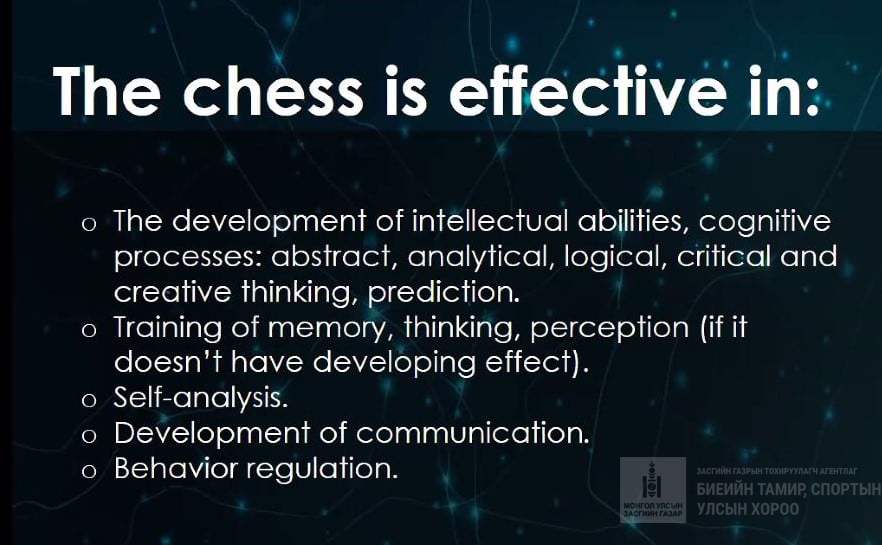 Шатрын холбоод, ФИДЕ академийн 130 төлөөлөгч 2 цагийн арга хэмжээнд оролцсон байна. Дэлхийн олон газраас цугласан 5 илтгэгч Аутизмтай хүүхдүүдэд шатар заах тухай туршлагаасаа хуваалцсан байна.