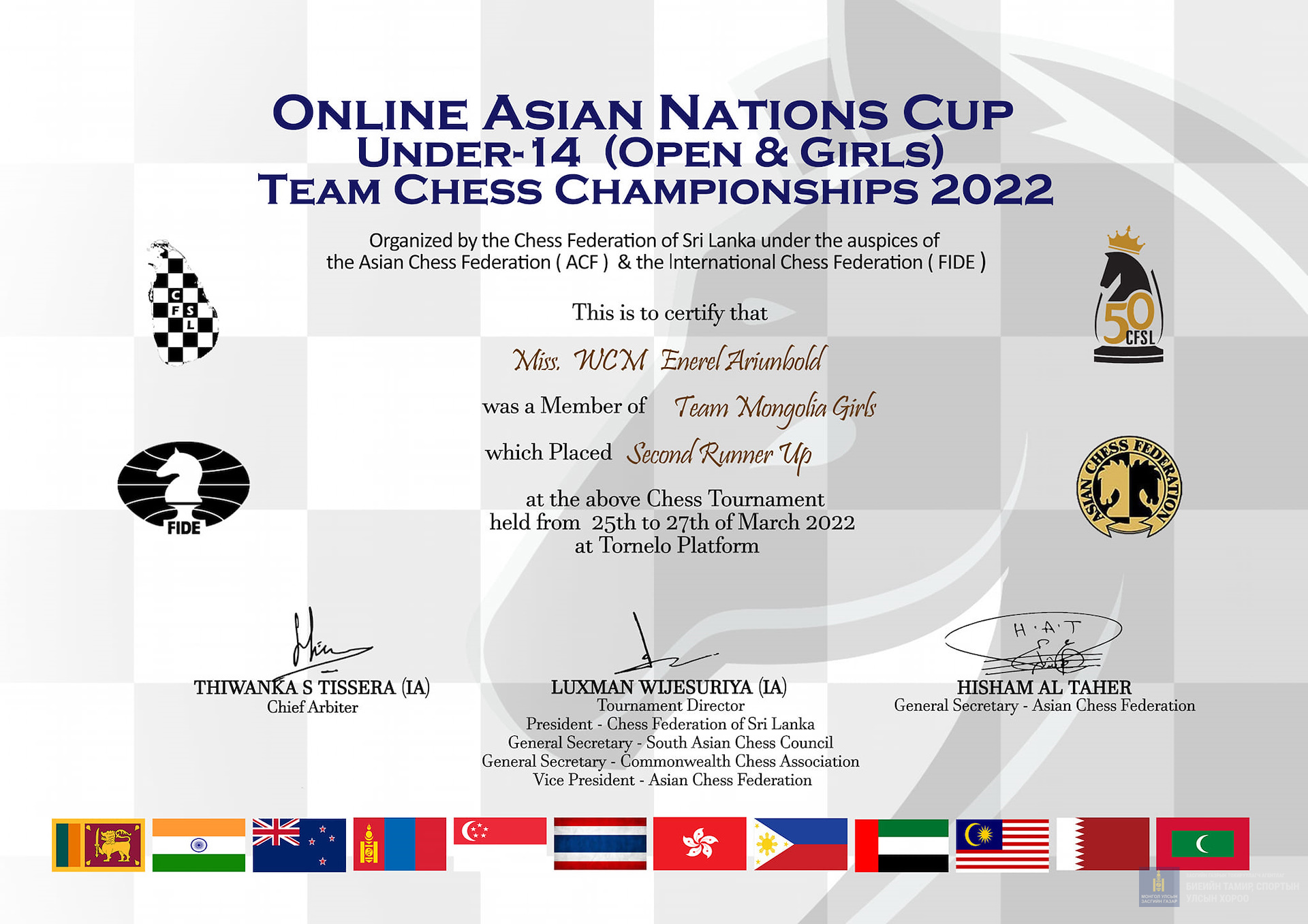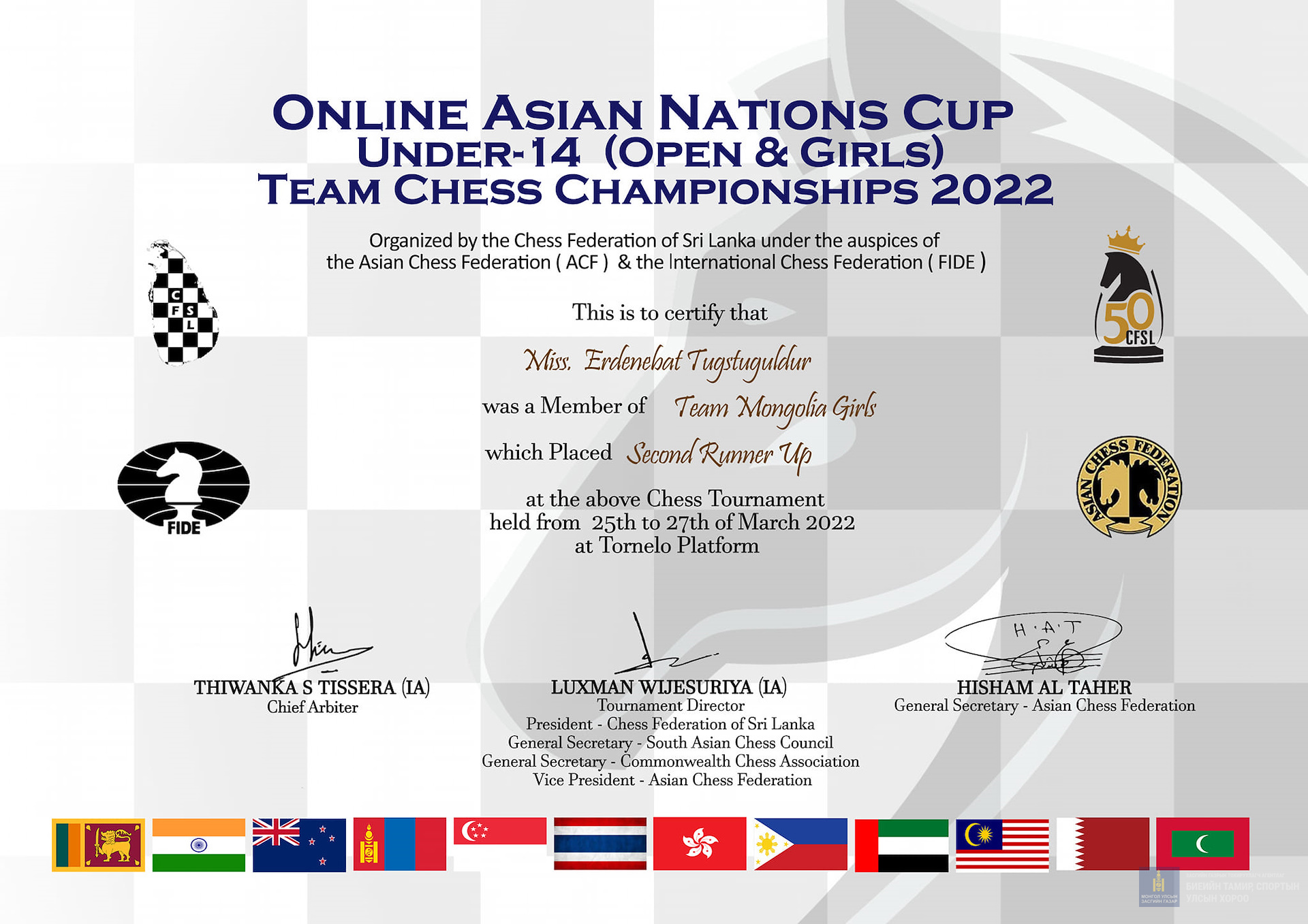 "2022 оны 14 хүртэлх насны Ази тивийн цомын аварга шалгаруулах онлайн багийн тэмцээн" 2022 оны 03-р сарын 25-27-ны өдрүүдэд tornelo платформ дээр зохиогдсон.