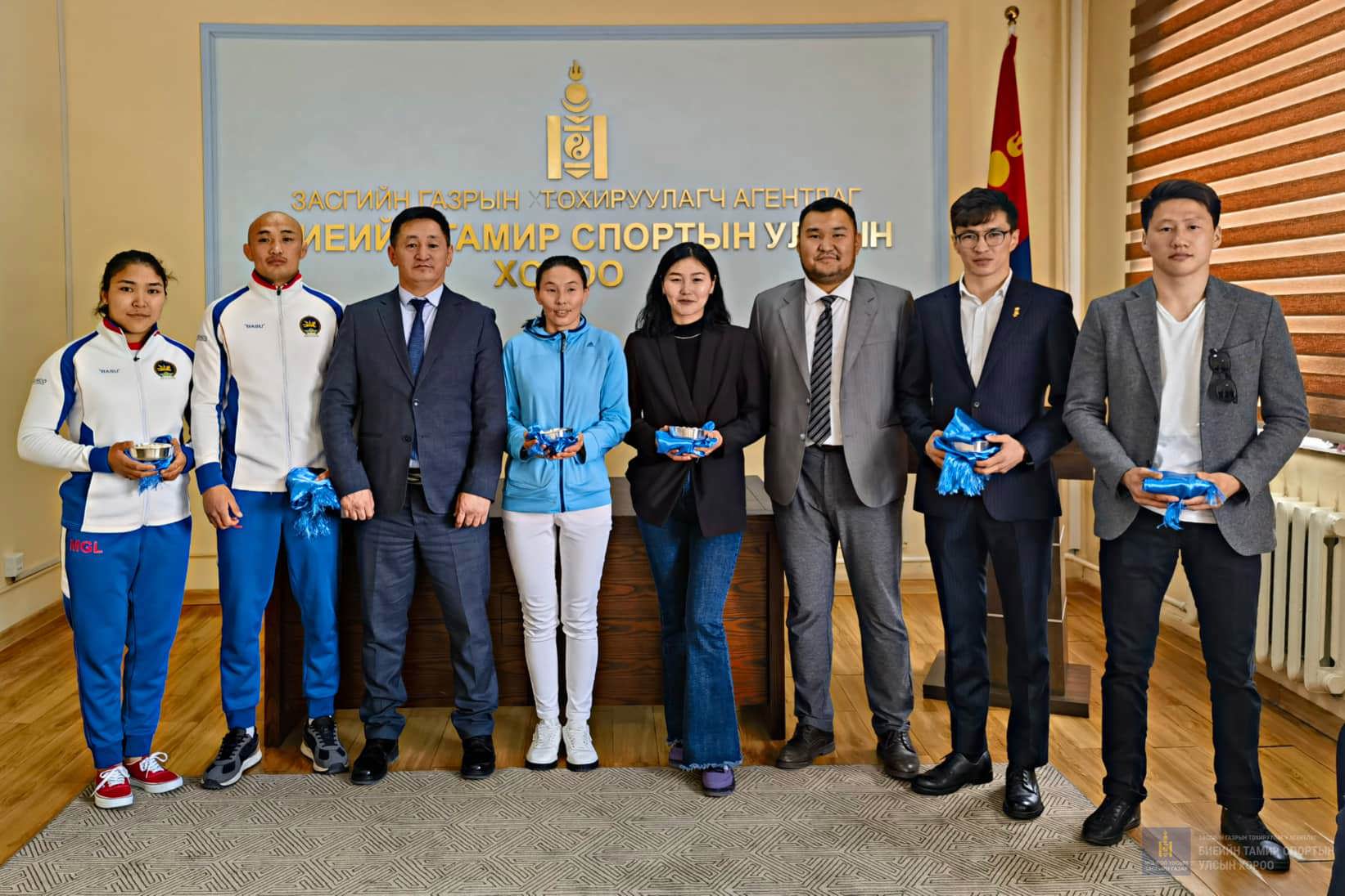Биеийн тамир, спортын улсын хорооны дарга О.Баттулга, үндэсний шигшээ багийн бодлогын хэрэгжилтийн хэлтсийн дарга Э.Билэгт нар Жүдо бөхийн ДАШТ-ээс хүрэл медаль хүртсэн ОУХМ Ё.Басхүү, Л.Энхрийлэн болон Боксын ДАШТ-ээс мөнгөн медаль хүртсэн ОУХМ Л.Алтанцэцэг ОУХМ Б.Чинзориг хүрэл медаль хүртсэн ОУХМ М.Энхжаргал, Б.Мишээлт нарыг хүлээн авч уулзаж амжилт хүслээ.