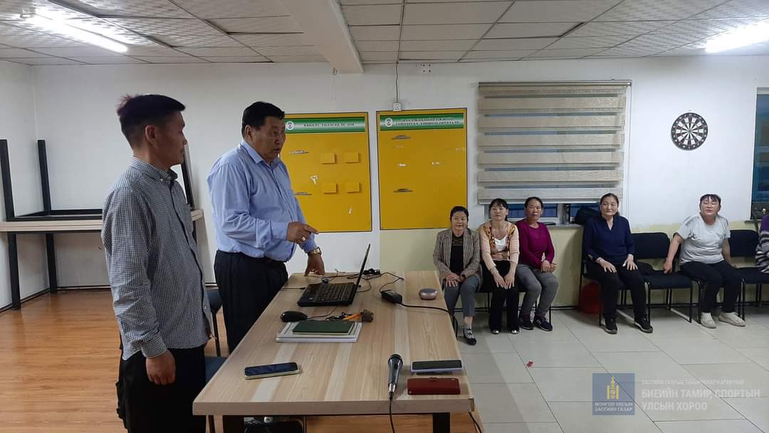 "ЭЕРЭГ ХАНДЛАГА-ЭРҮҮЛ НИЙГЭМ" АЯНЫ ХҮРЭЭНД БИЕИЙН ТАМИР, СПОРТЫН УЛСЫН ХОРООНЫ АЖЛЫН АЛБА ДУНДГОВЬ АЙМАГТ АЖИЛЛАЛАА