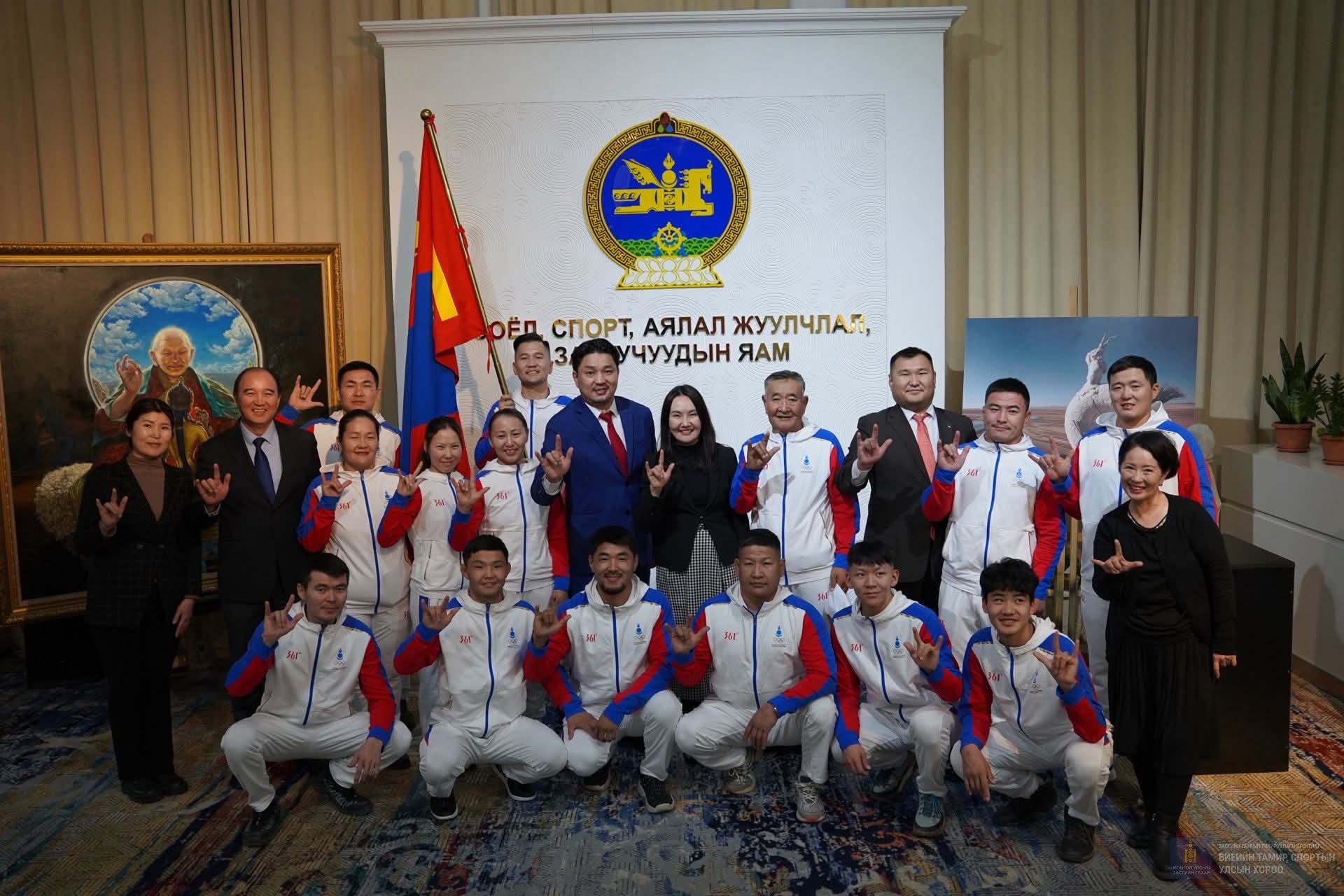 Япон улсын нийслэл Токио хотод дифлимпын XXV наадам арванэгдүгээр сарын 15-26-ны өдрүүдэд болно. Дифлимпын наадамд эх орноо төлөөлөн оролцох баг бүрэлдэхүүнийг өнөөдөр ССАЖЗЯ-ны сайд Ч.Ундрам, ССАЖЗЯ-ны Биеийн тамир, спортын бодлогын хэрэгжилтийг зохицуулах газрын дарга Д.Жаргалсайхан, Биеийн тамир, спортын улсын хорооны дарга Э.Билэгт нар хүлээн авч уулзаж, Монгол Улсын төрийн далбааг хүндэтгэлтэйгээр гардууллаа.