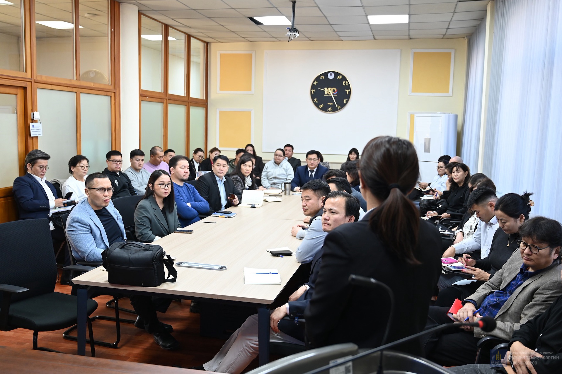 Сургалтад Биеийн тамир, спортын улсын хороо, 21 аймаг, есөн дүүргийн биеийн тамир, спортын хороо, газар, САУЭШТ-ийн ажилтан албан хаагч, Үндэсний шигшээ багийн холбоодын удирдах ажилтан, дасгалжуулагчдад авлигын эсрэг хууль, тогтоомж, авлигыг гэмт хэрэг, ашиг сонирхлын зөрчлөөс урьдчилан сэргийлэх мэдээллийг нэмэгдүүлэх зорилгоор уулзалт, сургалтыг зохион байгуулсан нь энэ.