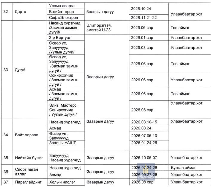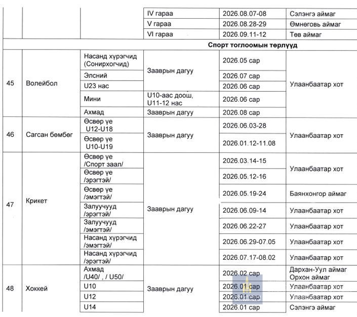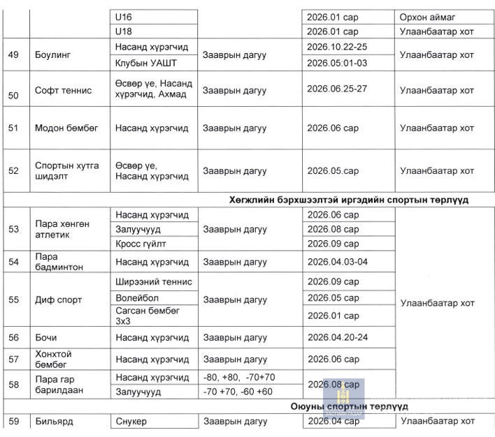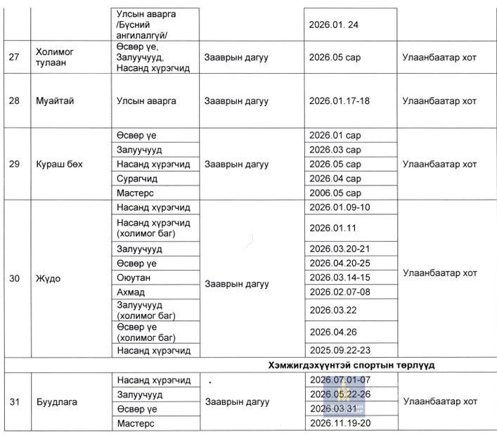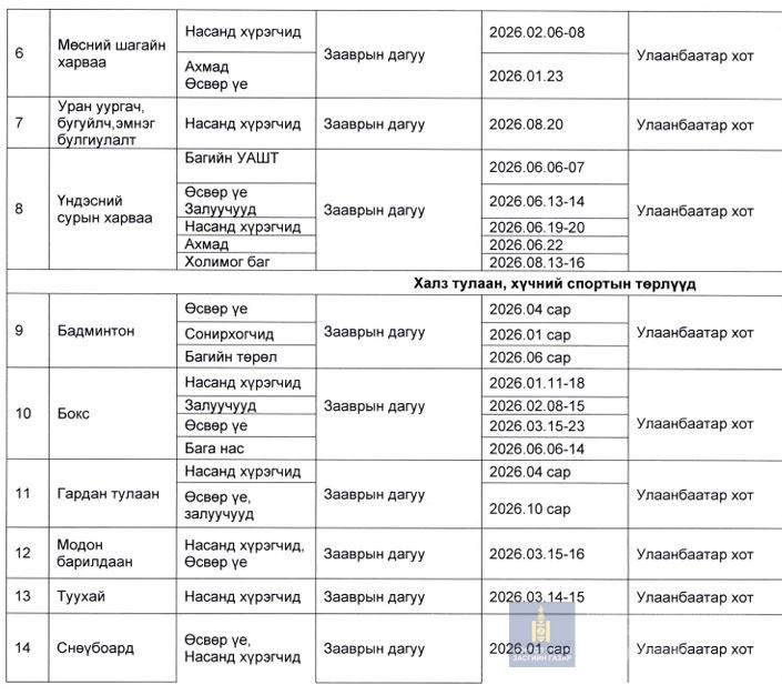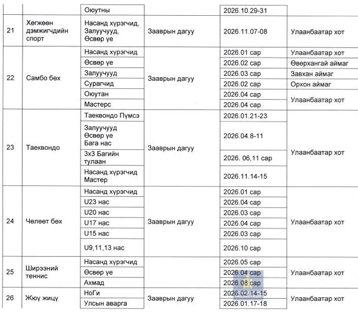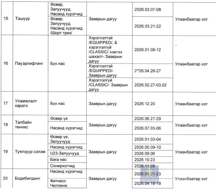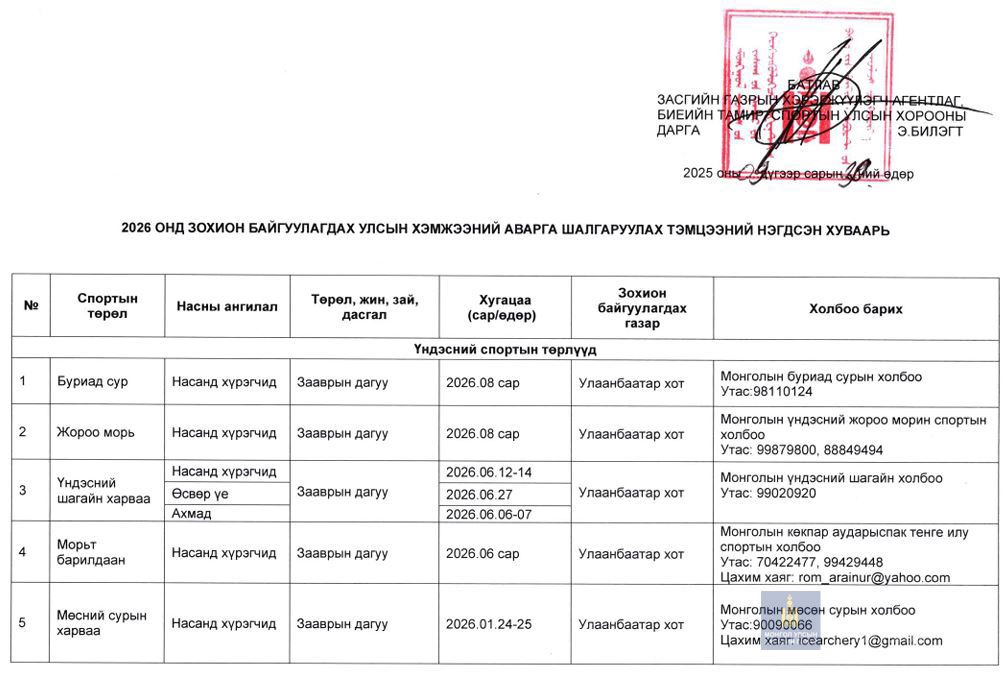 2026 ОНД ЗОХИОН БАЙГУУЛАГДАХ УЛСЫН ХЭМЖЭЭНИЙ АВАРГА ШАЛГАРУУЛАХ ТЭМЦЭЭНИЙ НЭГДСЭН ХУВААРЬ