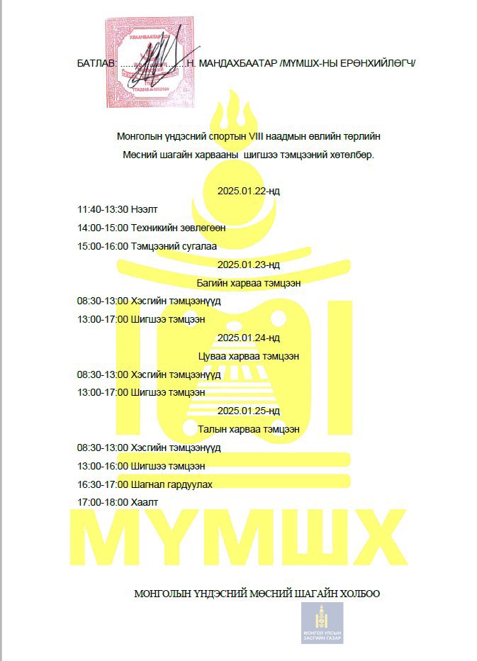 Мөсний шагайн харвааны шигшээ тэмцээний хөтөлбөр