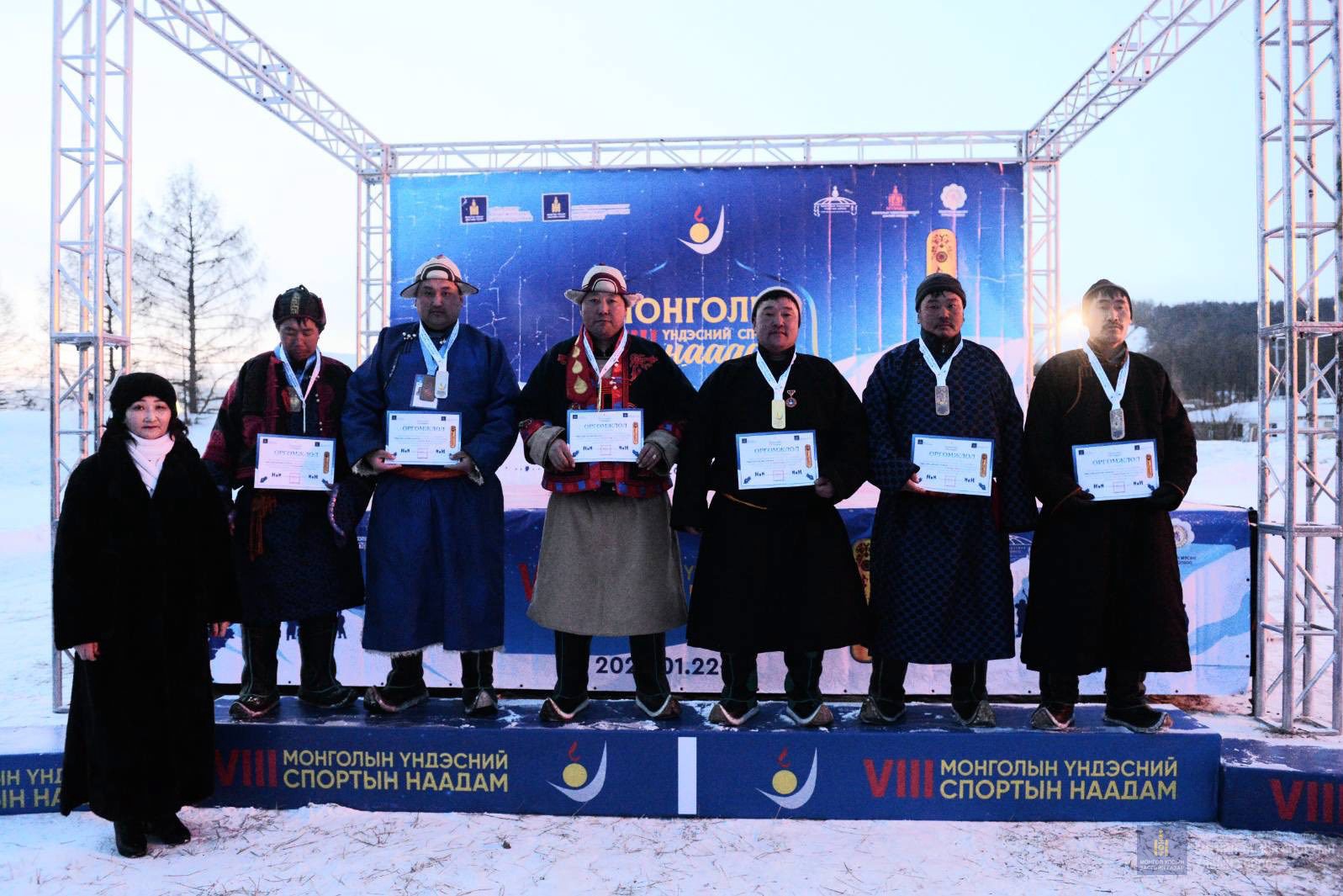Дөрвөн жил тутамд зохион байгуулагддаг Монголын үндэсний спортын наадмыг 1998 онд Биеийн тамир, спортын үндэсний төвийн дарга асан, Хөдөлмөрийн баатар, гавьяат тамирчин, дархан аварга Х.Баянмөнх санаачилж, өдгөө найм дахь удаагаа болж буй нь энэ. Монголын үндэсний спортын өвлийн наадмын отгон тэмцээний үеэр Ц.Мөнхбаатарт улсын мэргэн, Б.Цогбадрахад хошой мэргэн цол олгосон бол дархан мэргэн Д.Ууганбаярт үлэмж чимэг хүртээж байв. Үндэсний спортын дэг ёс, заншилыг хойч үедээ өвлүүлэн үлдээх цогц арга хэмжээ энэ бөгөөд үндэсний спортыг шинжлэх ухаанчаар хөгжүүлэх, бодлого боловсруулах нэн чухал ач холбогдолтой наадам юм.