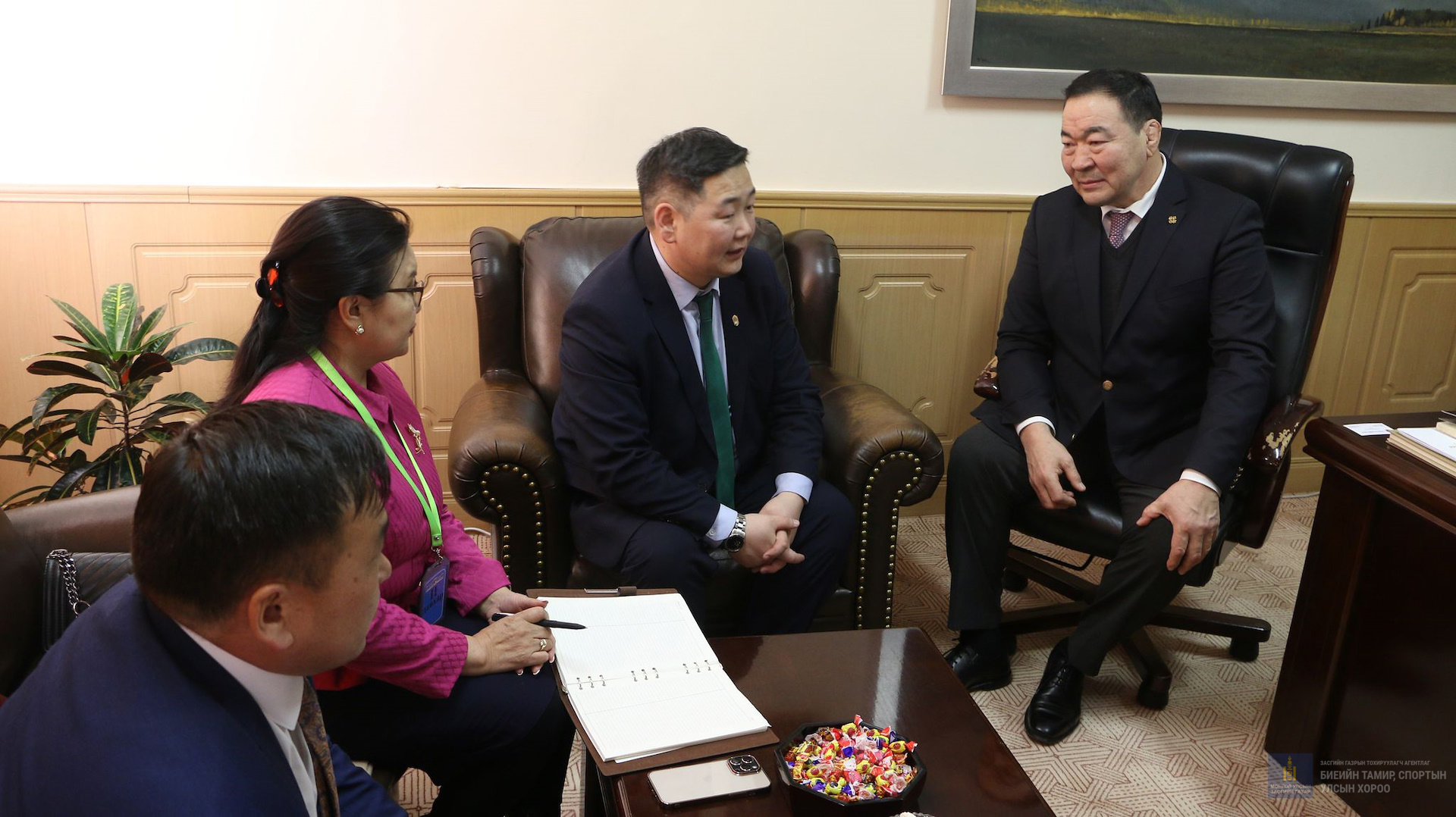 "Монголын Үйлдвэрчний Эвлэл"-ийн холбооны удирдлагуудыг салбар хариуцсан сайд хүлээн авч уулзлаа. МҮЭ- д хөгжлийн зорилтод тусгагдсан "Бүх нийтийн биеийн тамирыг дэмжих эрүүл, аюулгүй ажлын байр хөдөлгөөнийг" ХАБЭА-н сарын аяны хүрээнд зохион байгуулах ажлыг танилцуулахын сацуу цаашид спортын салбарыг хамтран ажиллахыг хүслээ.