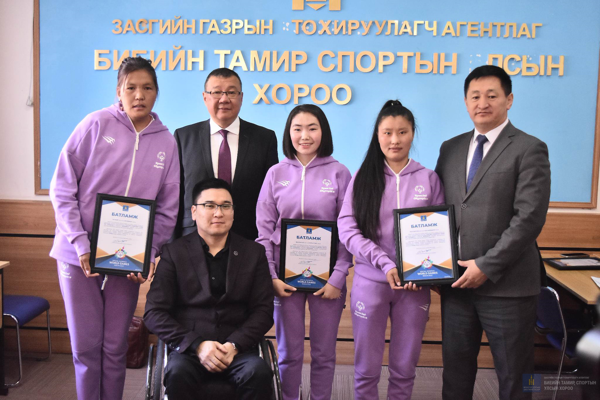 Өнөөдөр тус наадамд оролцох баг тамирчдад Монгол Улсын Ерөнхий сайдын Нийгмийн хөгжлийн асуудал эрхэлсэн зөвлөх Ч.Ундрахбаяр, Засгийн газрын хэрэг эрхлэх газрын Салбарын бодлого зохицуулалтын газрын дарга Ш.Мөнхцэрэн, Олимп, нийтийн биеийн тамир, спортын үндэсний хорооны ажлын албаны дарга Э.Тэмүүжин, Биеийн тамир, спортын улсын хорооны даргын үүргийг түр орлон гүйцэтгэгч О.Баттулга, Монголын Тусгай олимпын хорооны гүйцэтгэх захирал Алтанцэцэг нар амжилт хүсч батламж гардууллаа.
