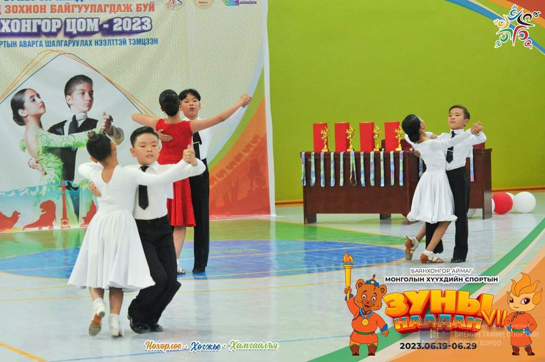 Хүүхдийн наадмын хүрээнд спорт бүжгийн “Баянхонгор кап-2023” цомын аварга шалгаруулах тэмцээн болж байгаа бөгөөд 300 гаруй тамирчид оролцож байна.