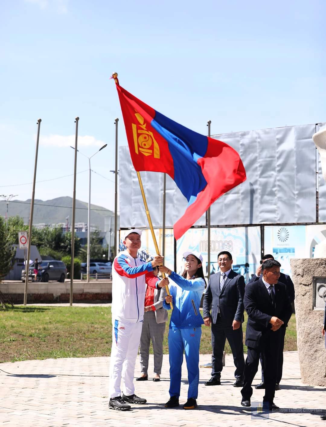 Тус наадамд эх орноо төлөөлөн оролцох Монголын баг тамирчдад хүндэтгэл үзүүлж, төрийн далбаа гардуулан өгөх ёслол өнөөдөр Олимпик хауст боллоо.