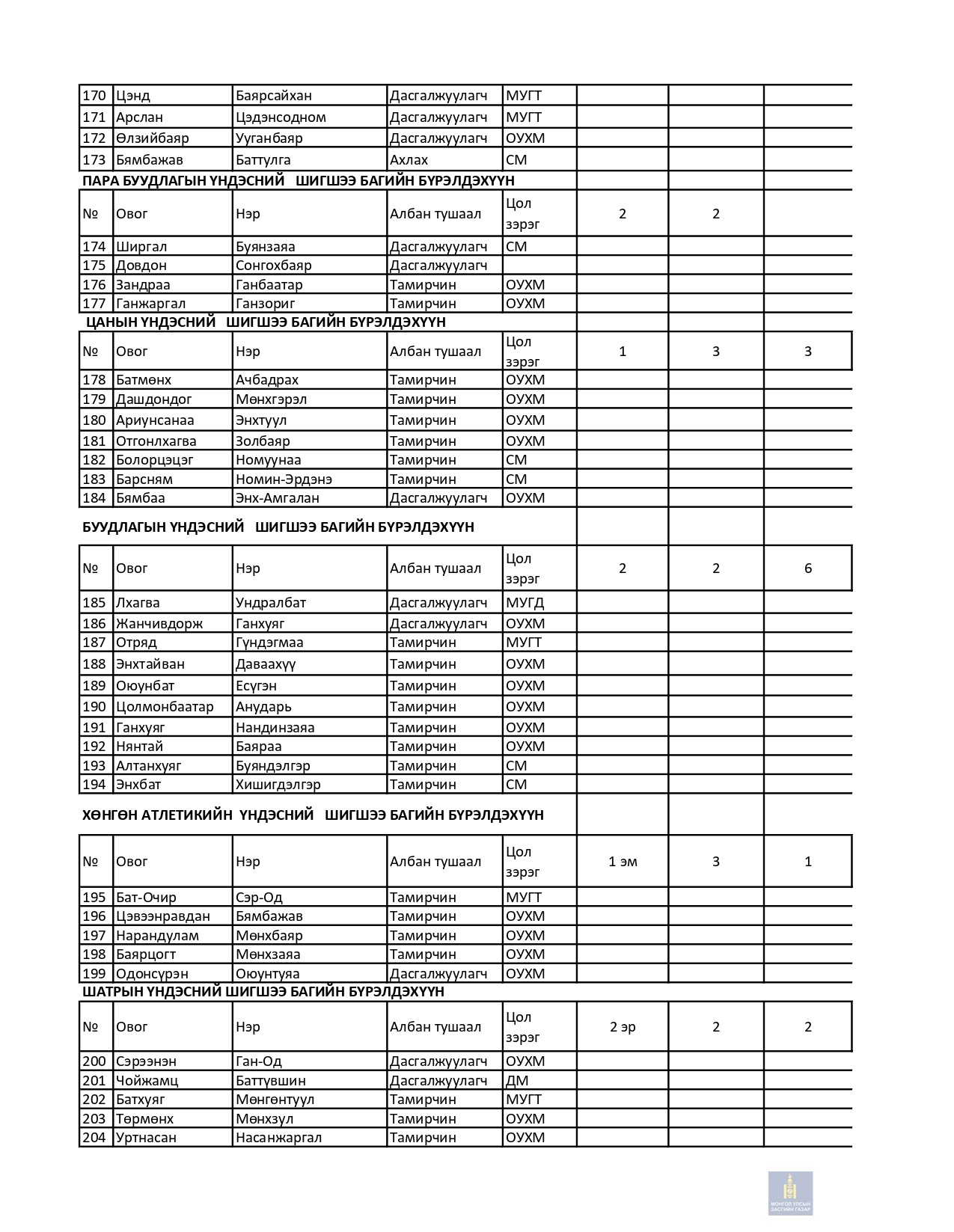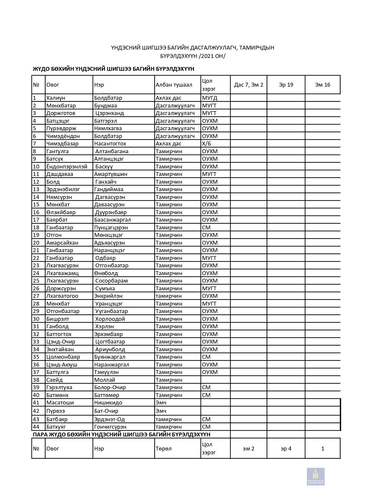 2021 ОНЫ ҮНДЭСНИЙ ШИГШЭЭ БАГИЙН БҮРЭЛДЭХҮҮН