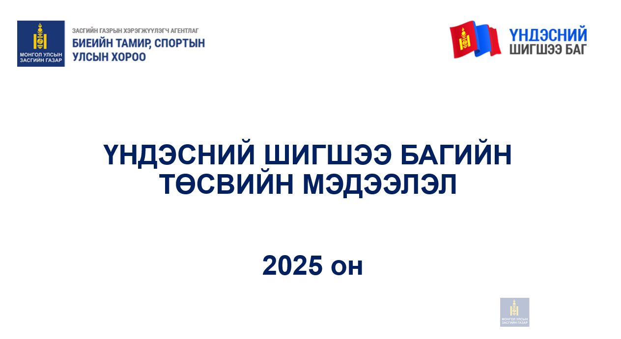 2025 ОНЫ ҮНДЭСНИЙ ШИГШЭЭ БАГИЙН ТӨСВИЙН МЭДЭЭЛЭЛ