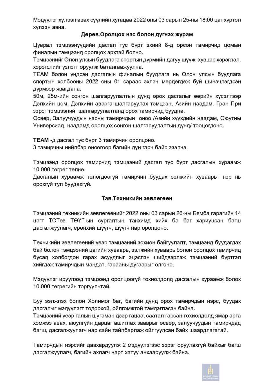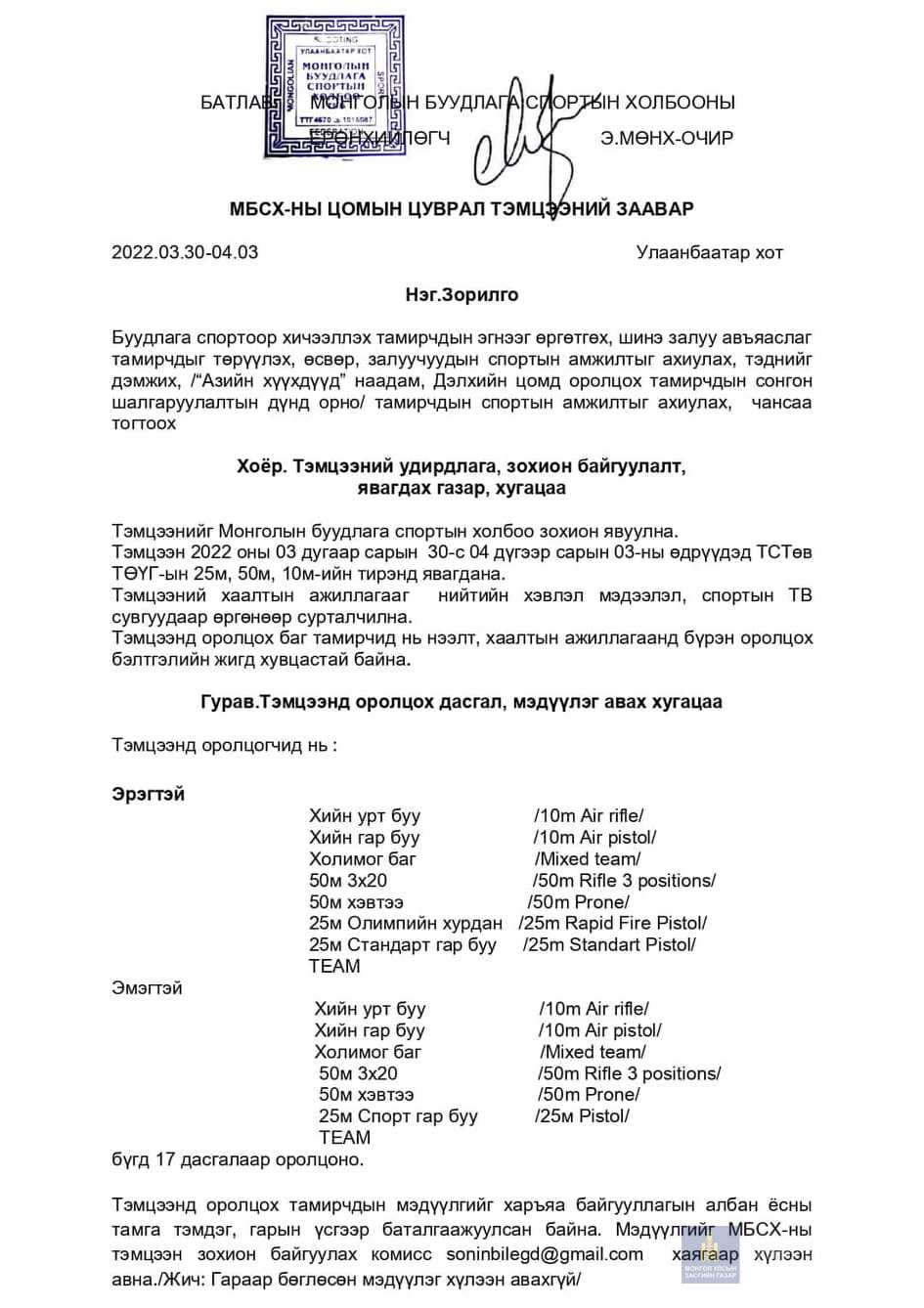 МБСХ-ны цомын тэмцээн-1-р шат 2022 он
