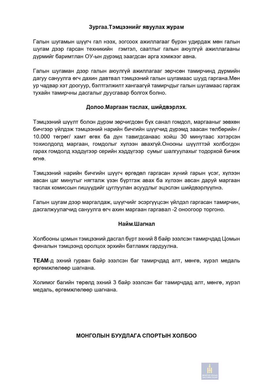 МОНГОЛЫН БУУДЛАГА СПОРТЫН ХОЛБООНЫ ДҮРЭМ
