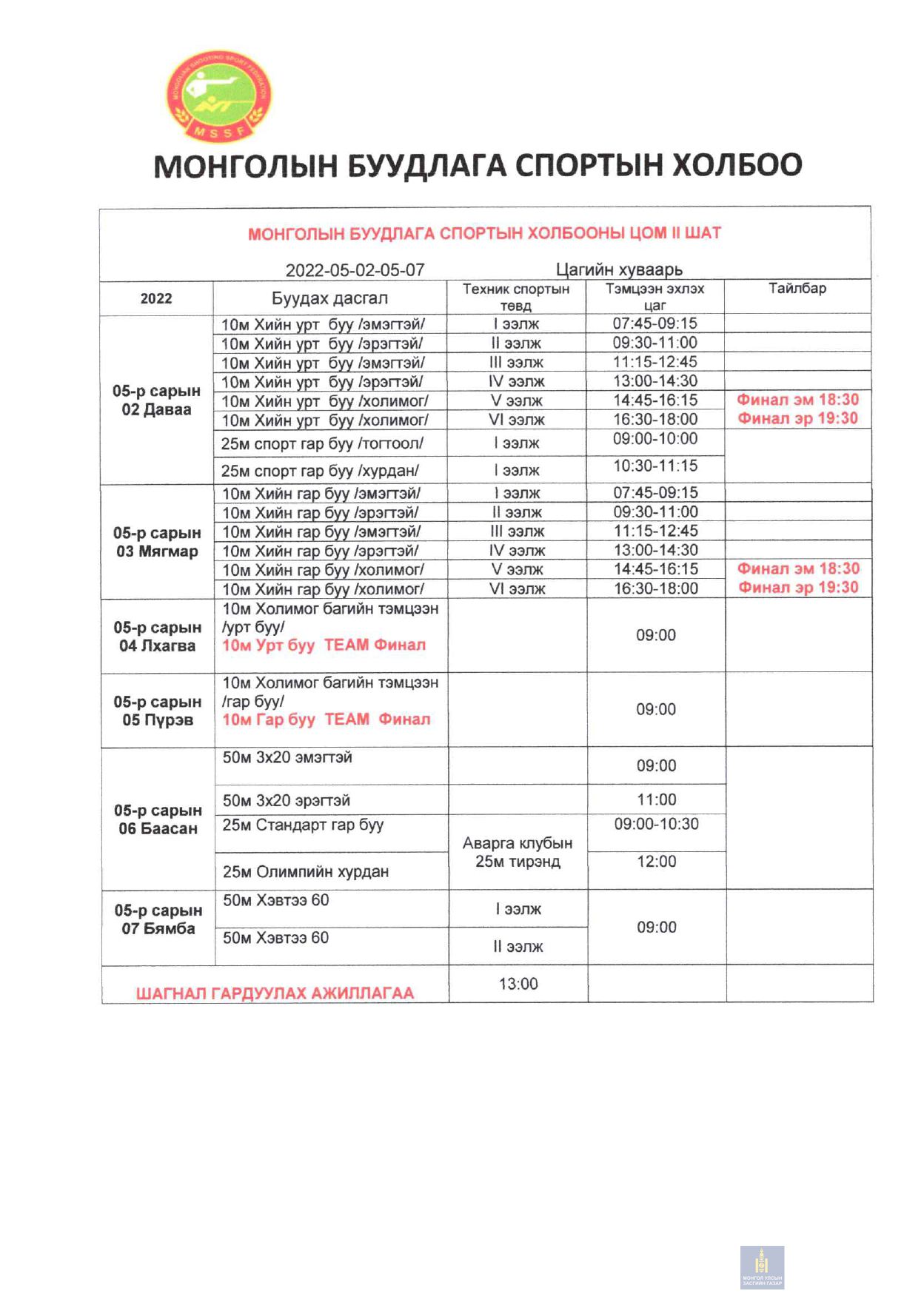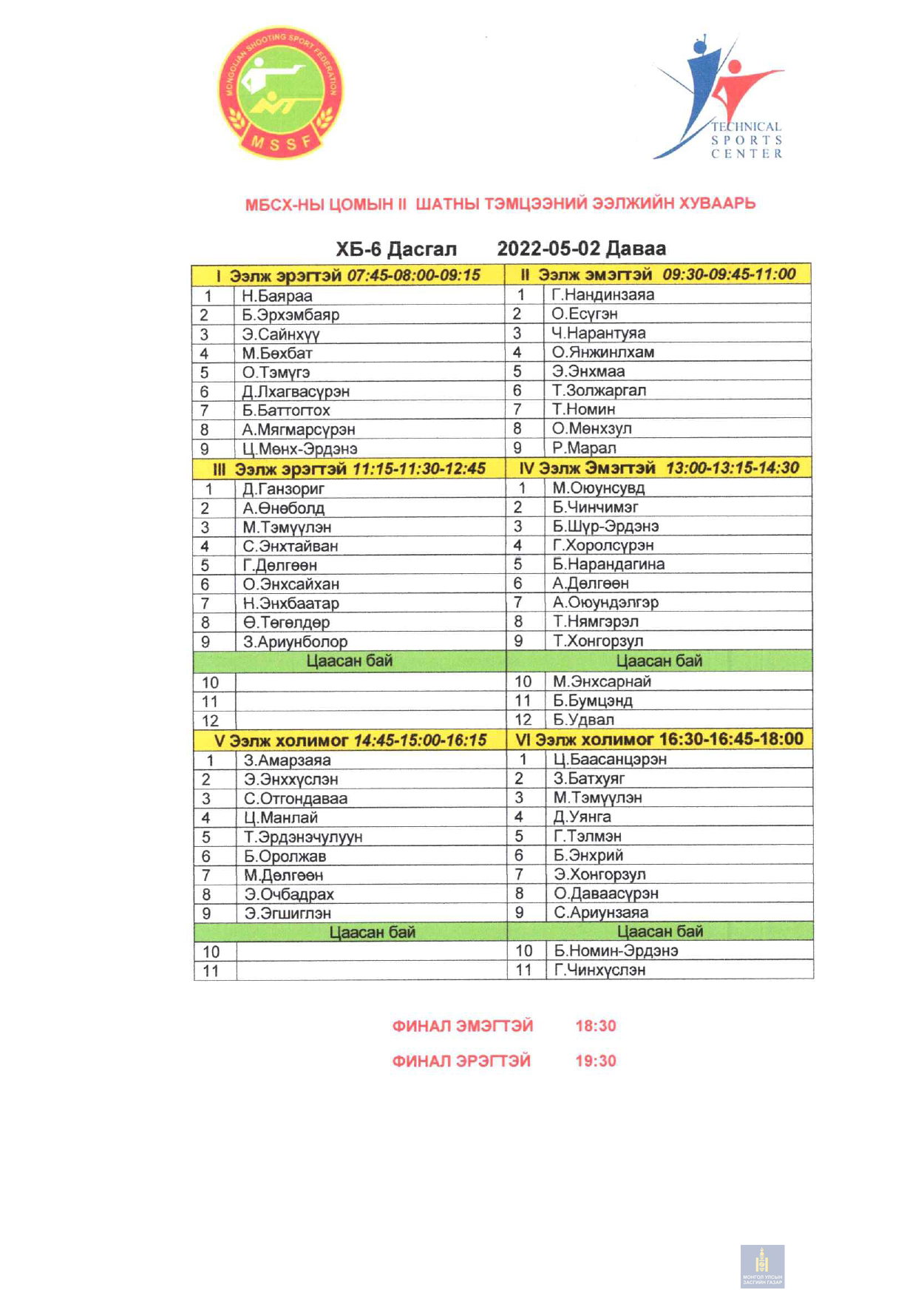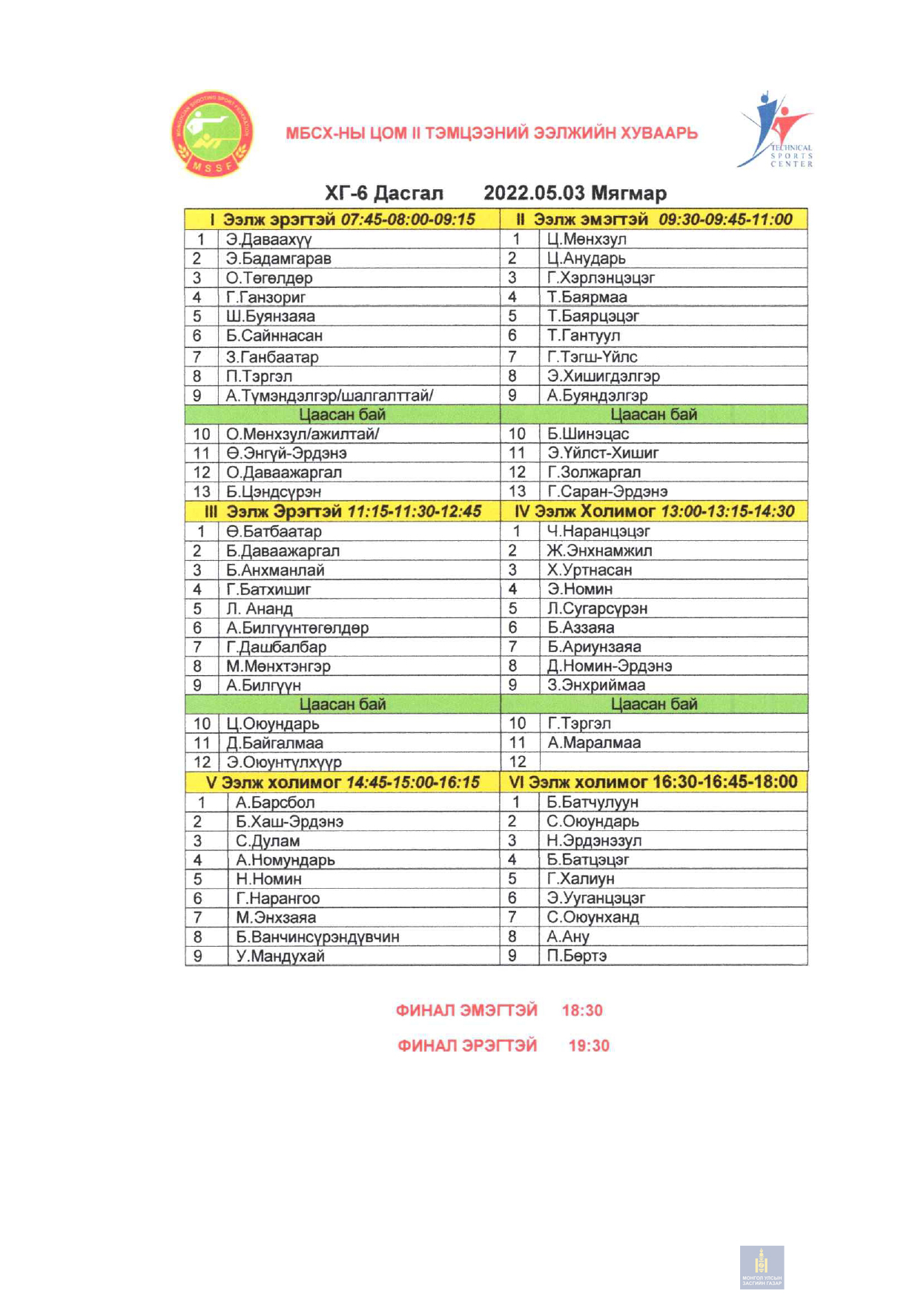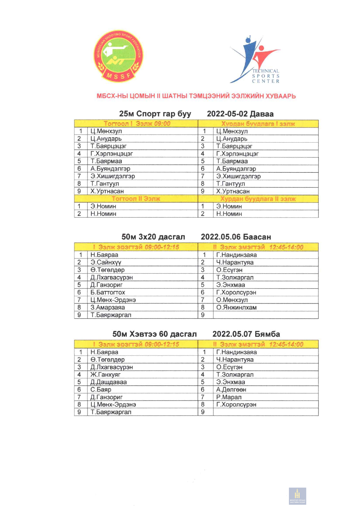 МБСХ-ны цомын 2-р шатны тэмцээн 2022.05.02-07