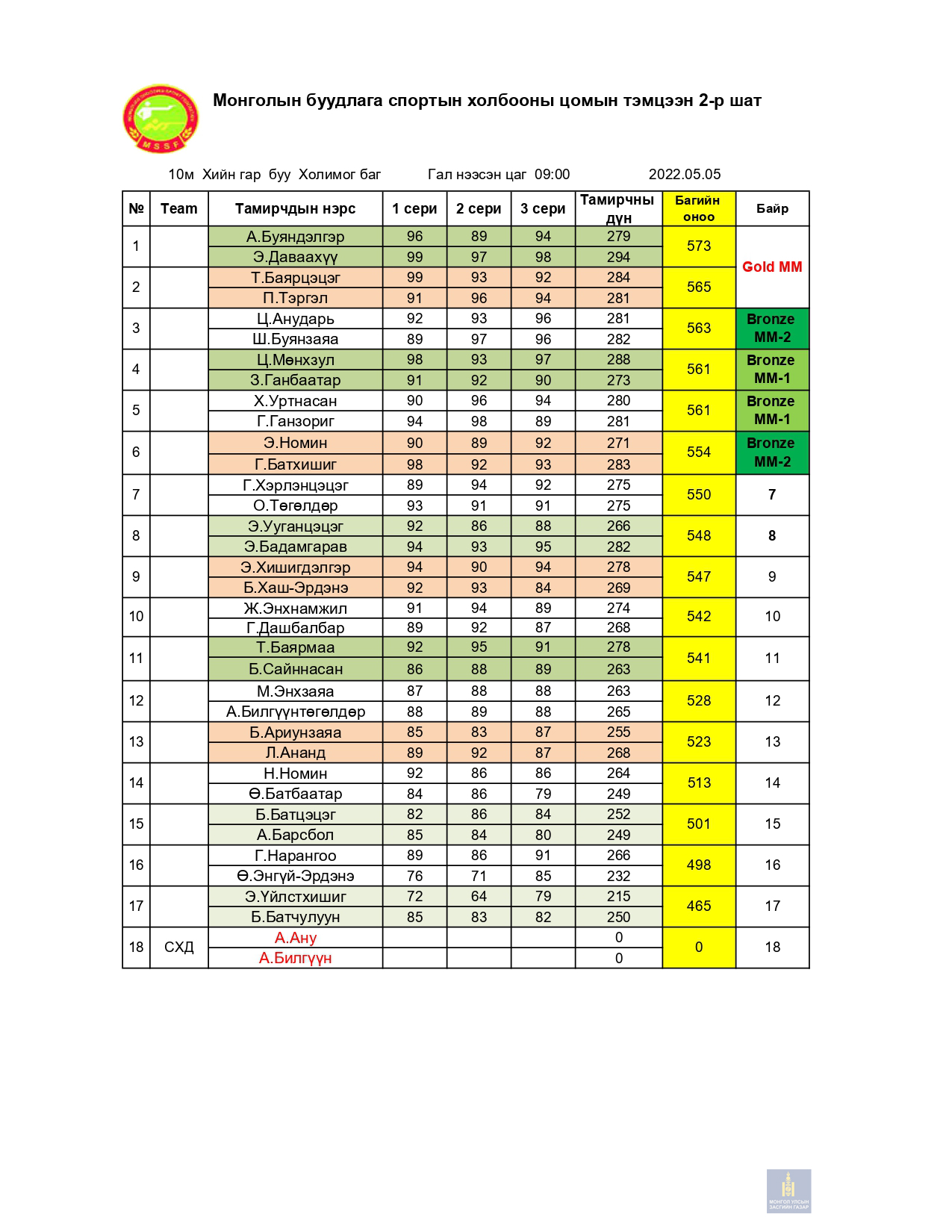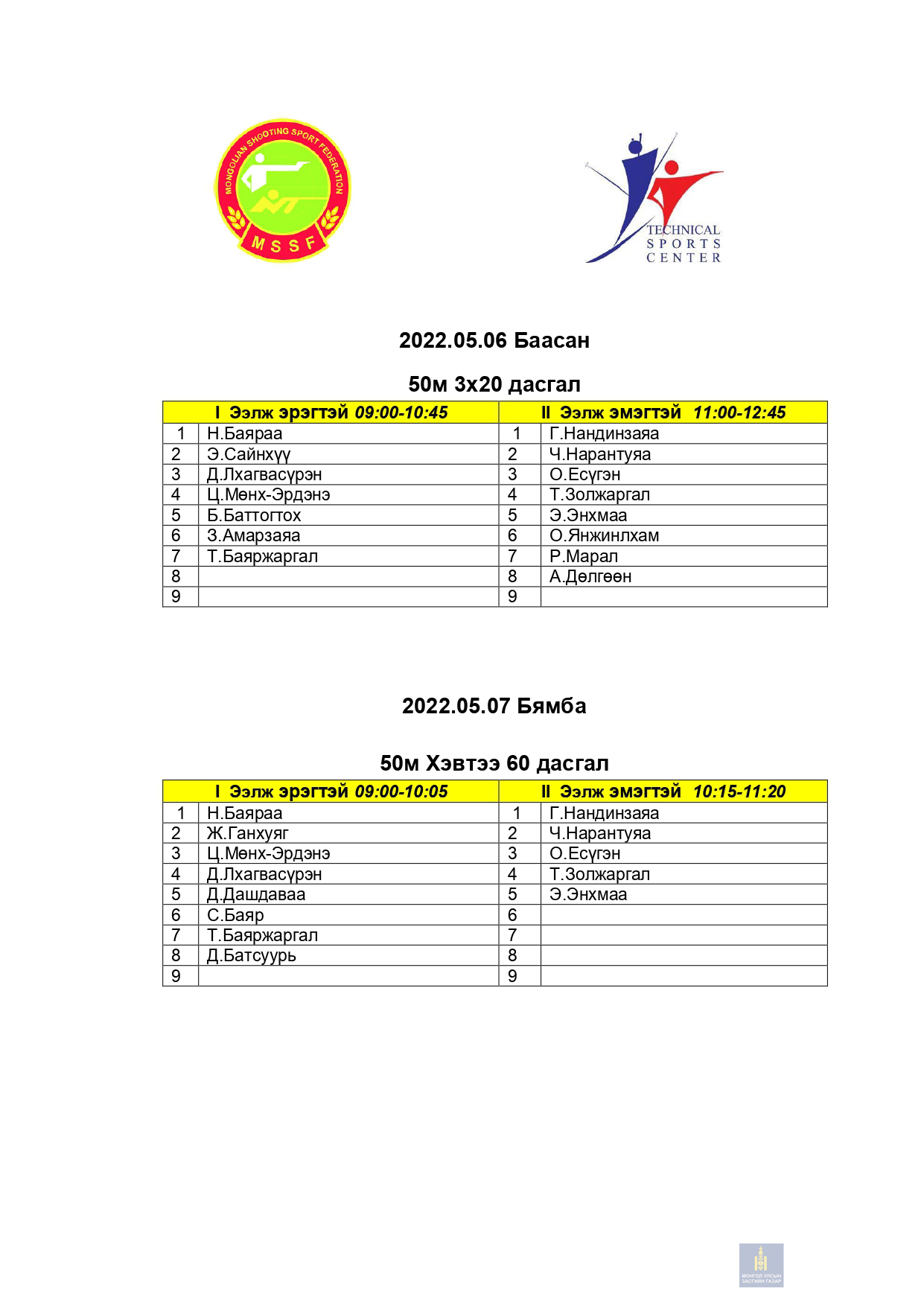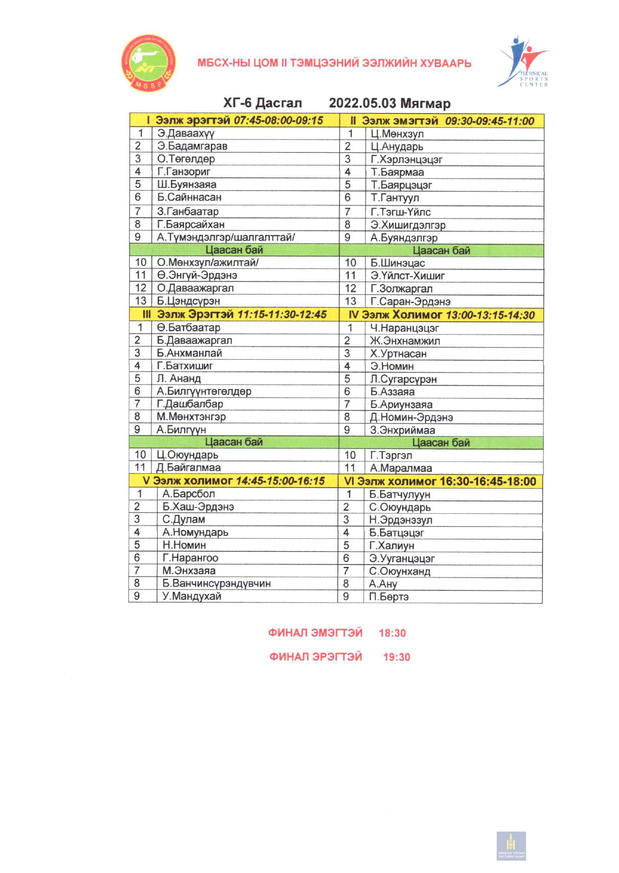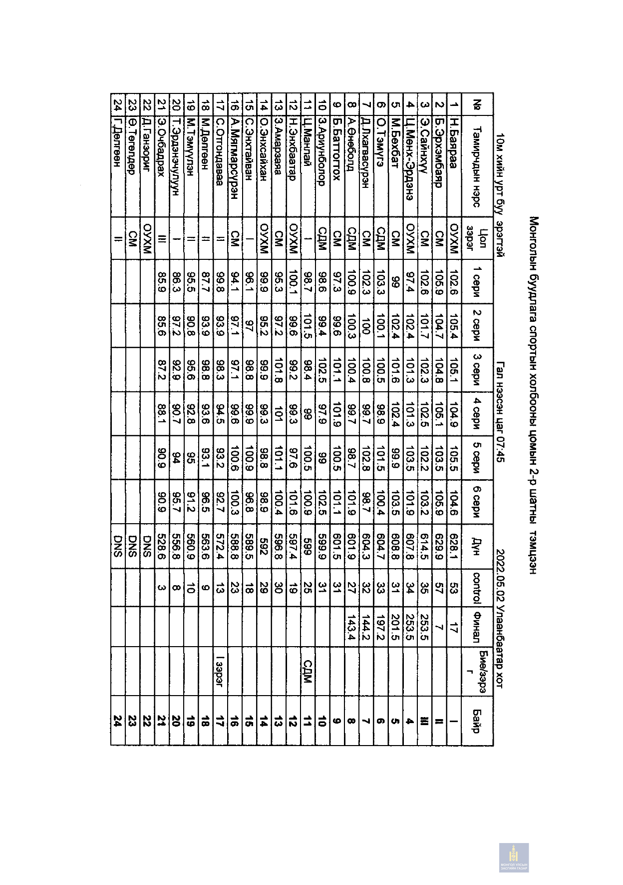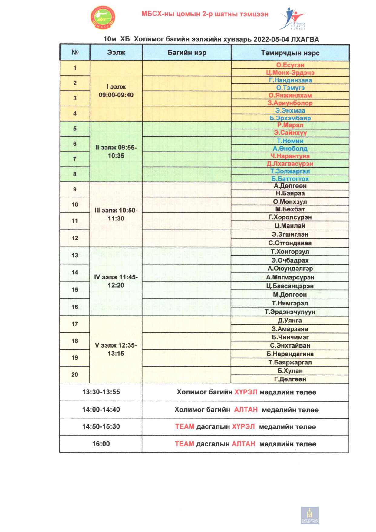 МБСХ-ны цомын 2-р шатны тэмцээн 2022.05.02-07