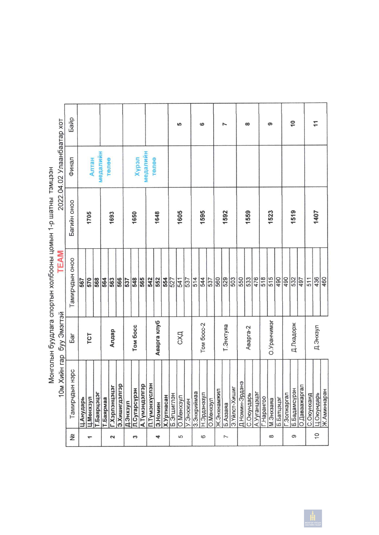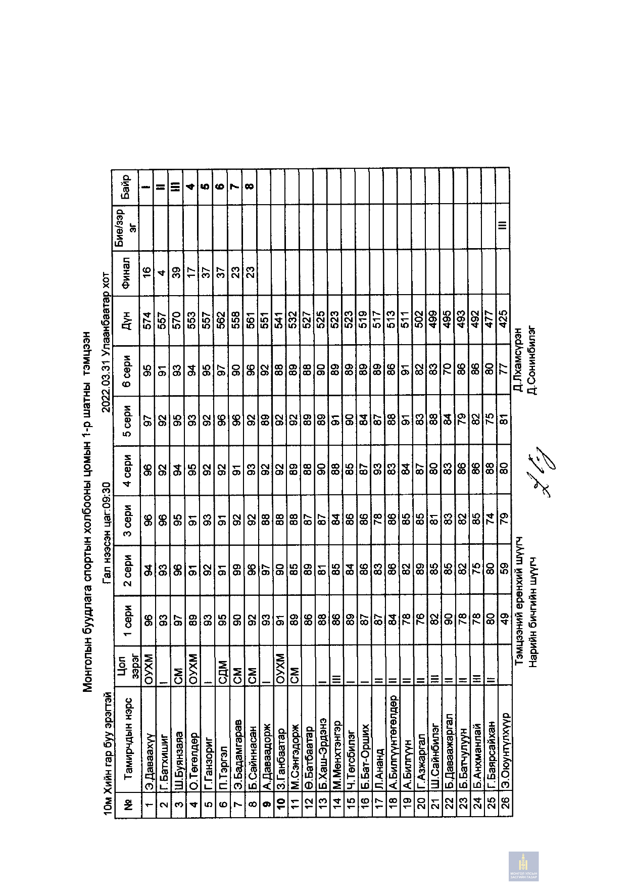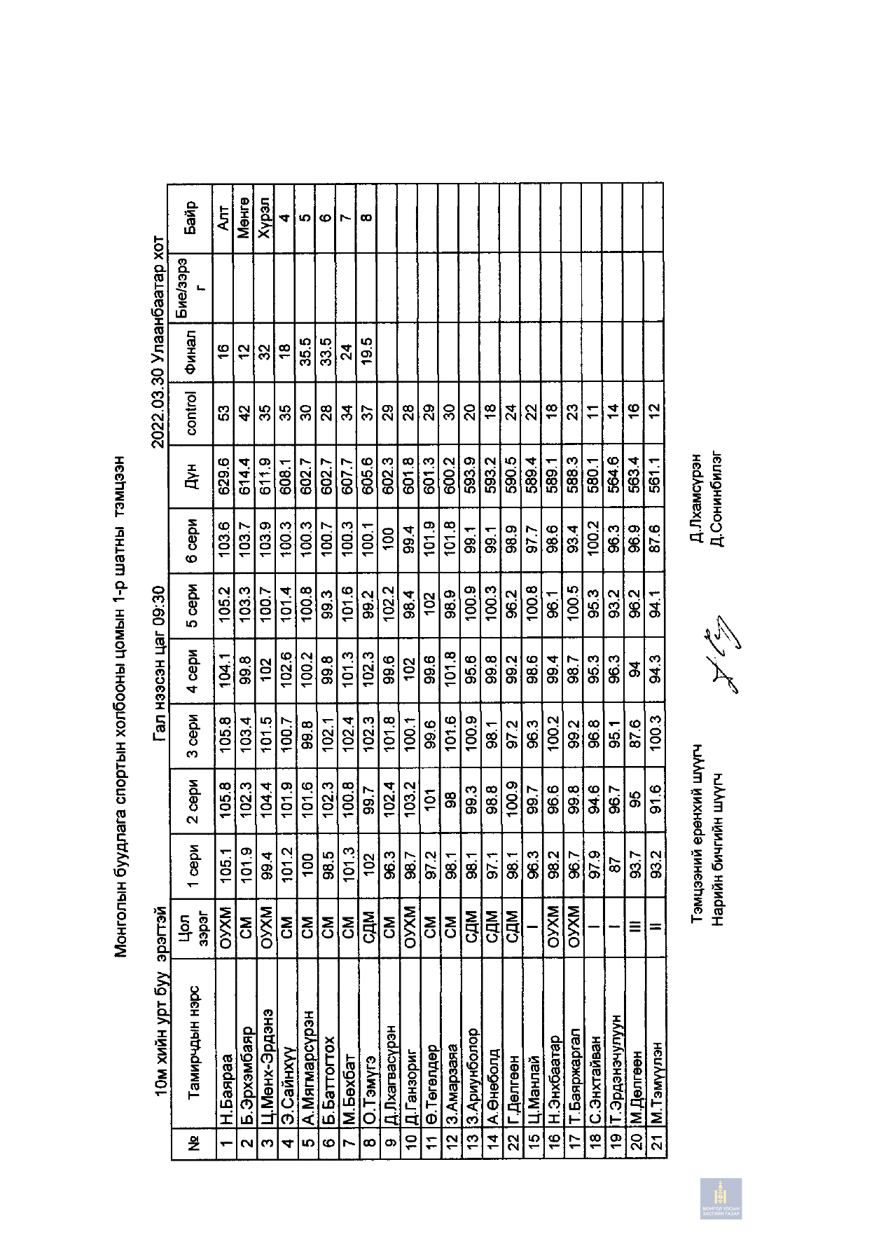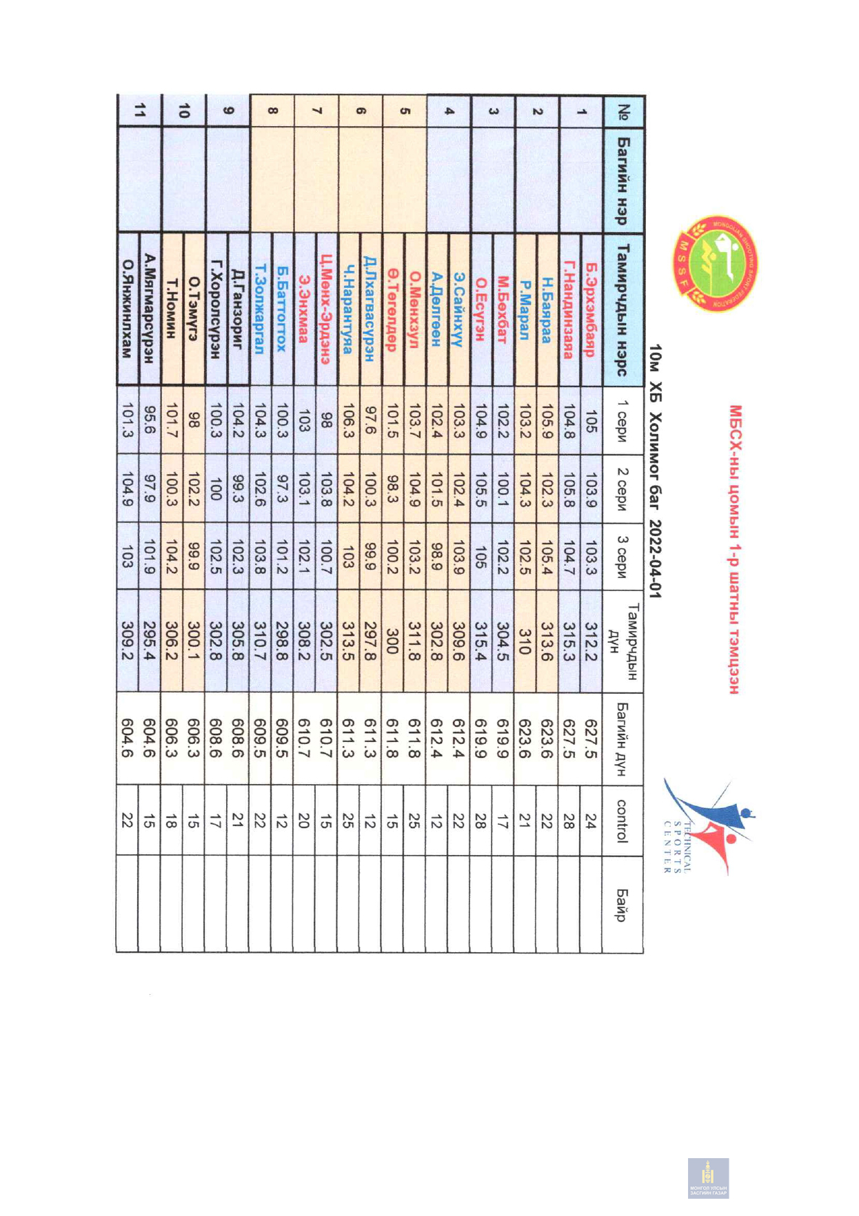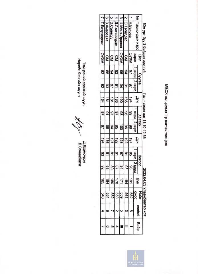 МБСХ-ны цомын тэмцээн-1-р шат 2022.03.30-04.04