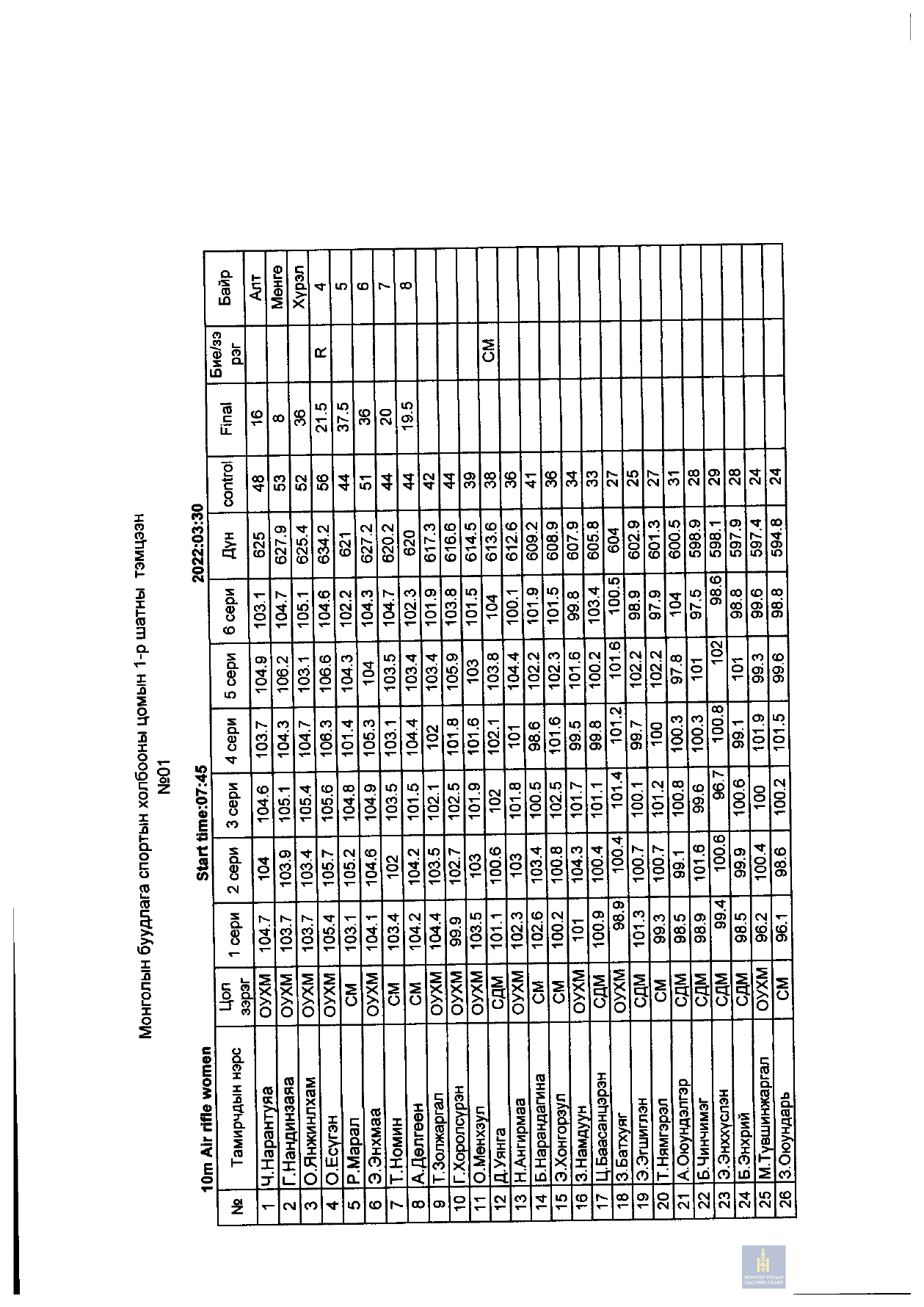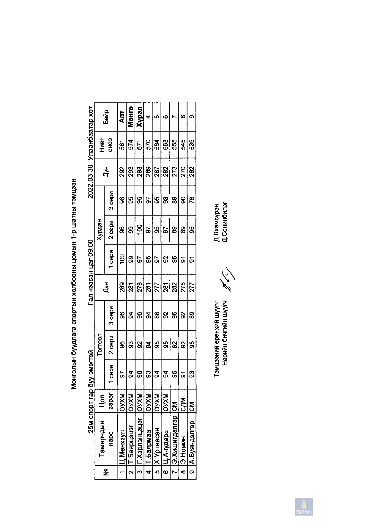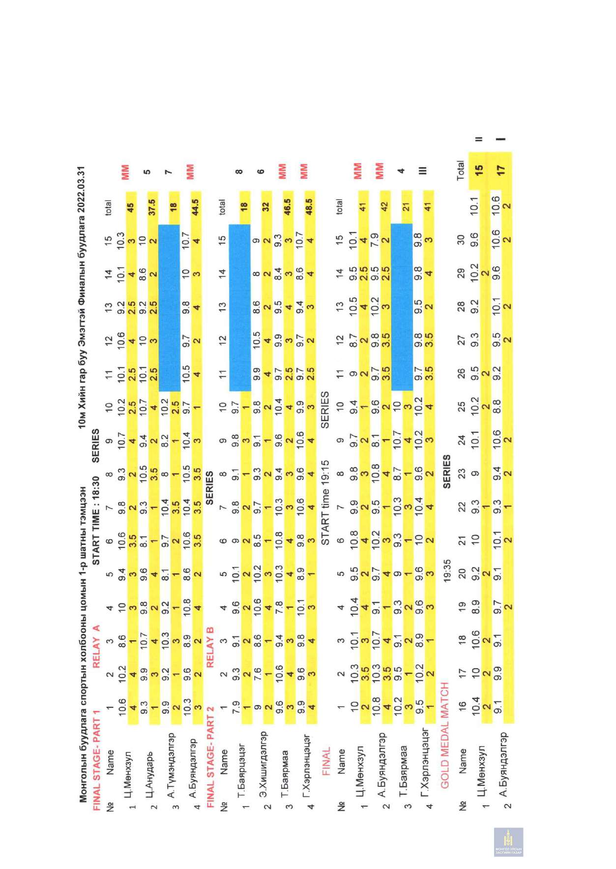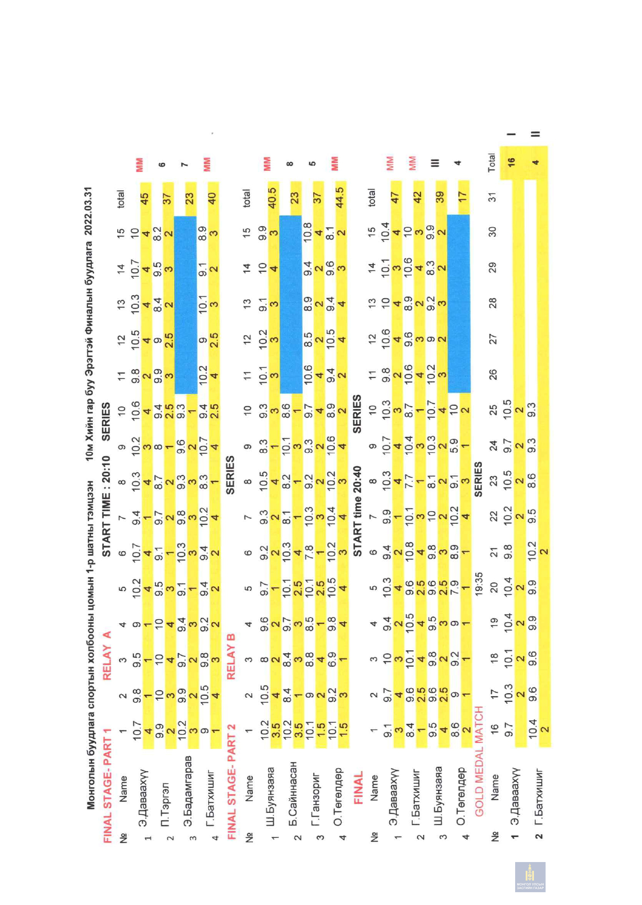МБСХ-ны цомын тэмцээн-1-р шат 2022.03.30-04.04