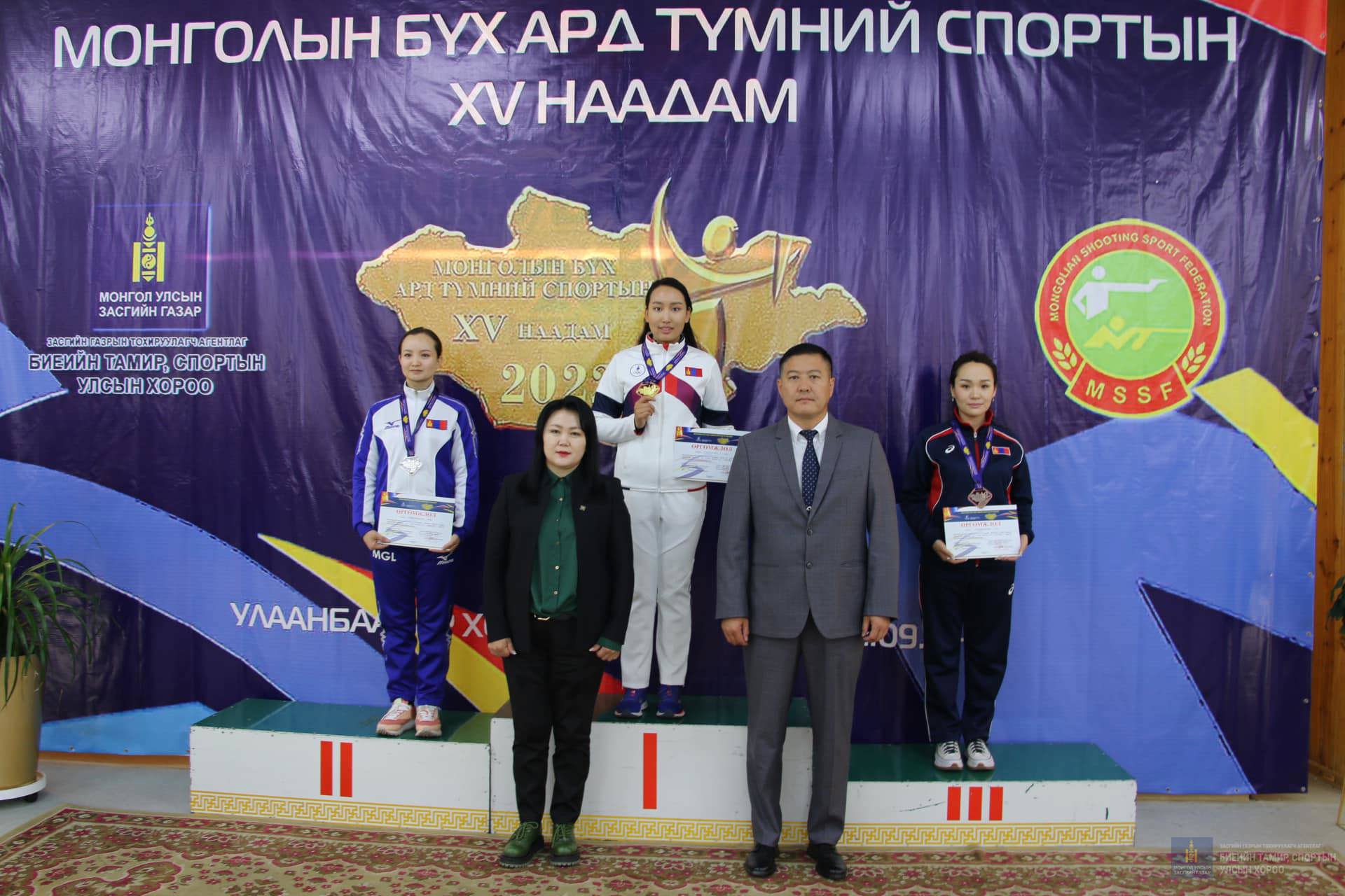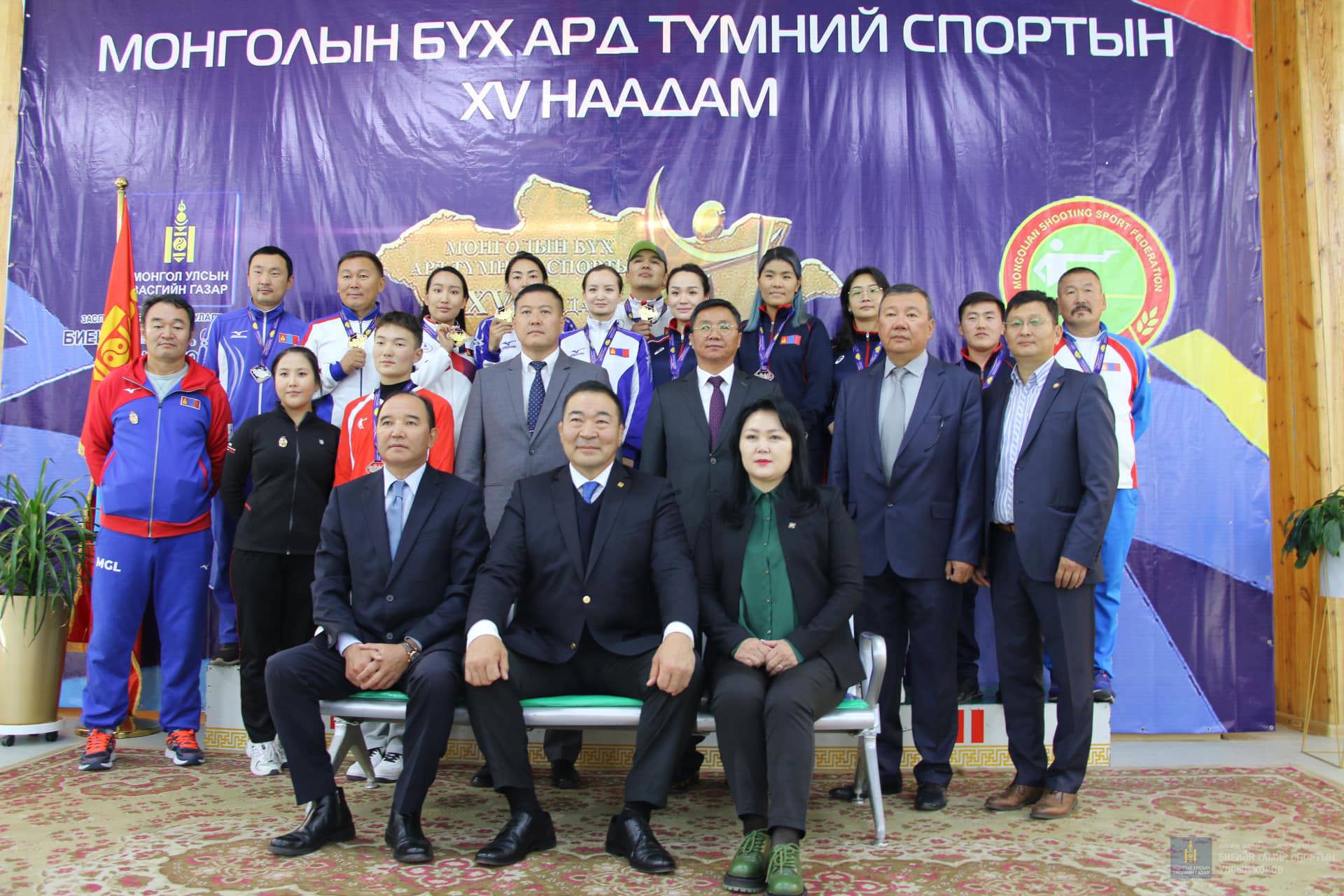 Монголын бүх ард түмний спортын XV их наадамд буудлага спортын төрөлд 26 байгууллагын 103 тамирчин 2022 оны 09 сарын 10-наас 15-ны өдрүүдэд цэц мэргэнээ сорьж шилдэгүүдээ шалгарууллаа.Хэнтий аймгийн шилдэг залуу тамирчин Б.Эрхэмбаяр тус наадамд 10м-ийн Хийн урт бууны дасгалд бутархай дүнгээр 627 оноо онож Олон улсын хэмжээний мастерын болзол, тус дасгалд хувийн дүнгээр аваргын Алтан медаль хүртсэнээс гадна 10м-ийн Хийн урт бууны Холимог багийн дасгалд багаараа Хүрэл, 50м-ийн 3 байдлын 3х20 эрэгтэйчүүдийн дасгалд хувийн дүнгээр Хүрэл медаль тус тус хүртлээ.Мөн түүнчлэн СМ Б.Сугар багшийн шавь СМ Т.Номин 10м-ийн Хийн урт бууны эмэгтэйчүүдийн ангилалд 621,1 оноо онож Олон улсын хэмжээний мастерын болзол, 10м-ийн Хийн гар бууны эрэгтэйчүүдийн ангилалд Орхон аймгийн тамирчин Г.Батхишиг 565 онож Спортын дэд мастерын болзол тус тус хангалаа.
