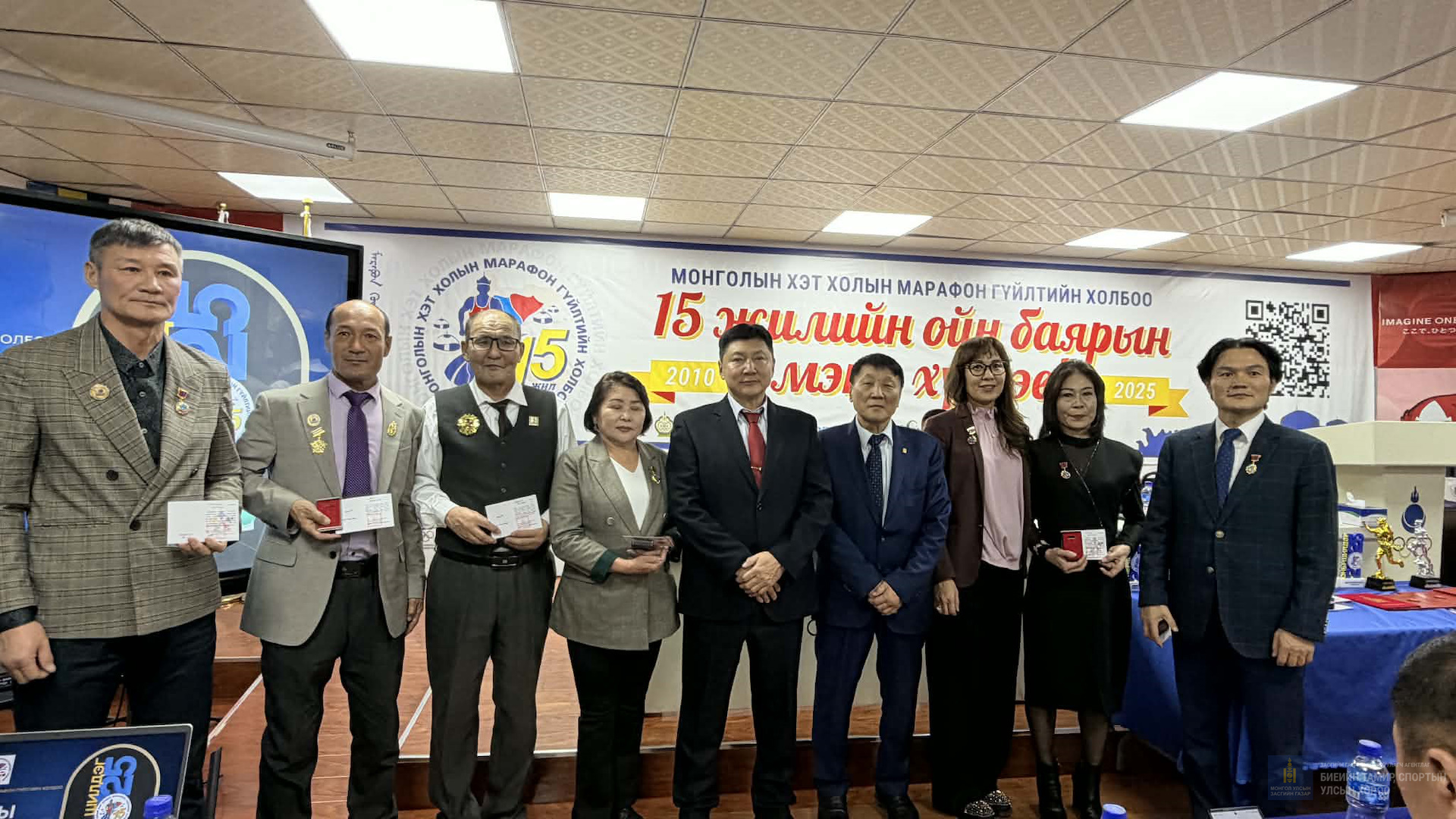 2025 оны жилийн эцсийн тайлангийн болон холбооны 15 жилийн ойн баярын хүндэтгэлийн хурал ийнхүү үр дүнтэй болж, дурсгалын зураг татуулж, ирсэн зочдод холбооны нэрэмжит гарын бэлгийг өгснөөр өндөрлөлөө.