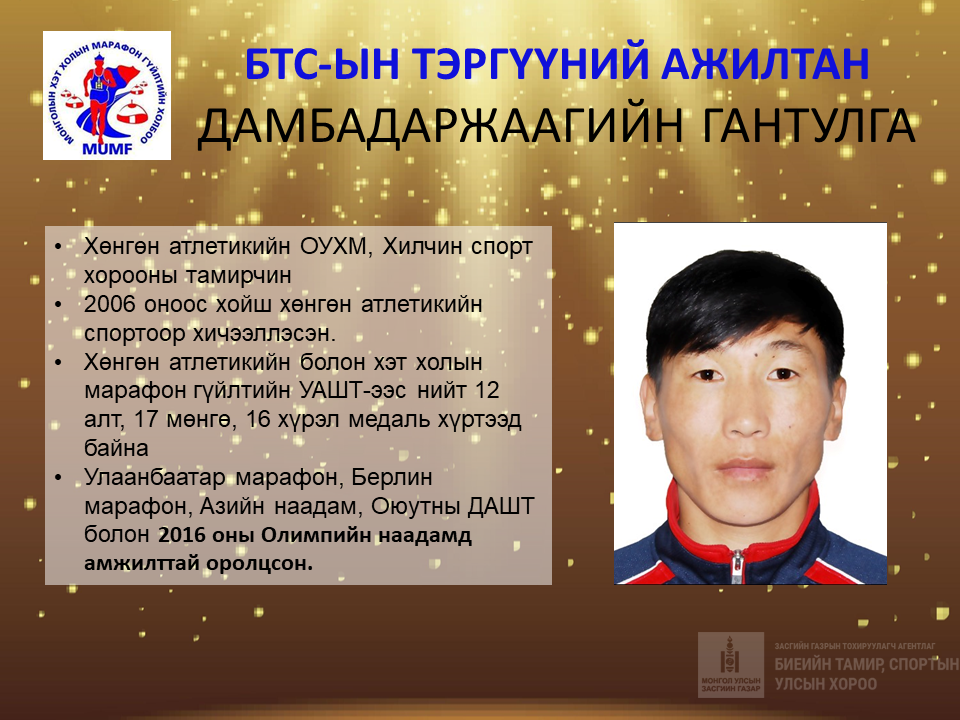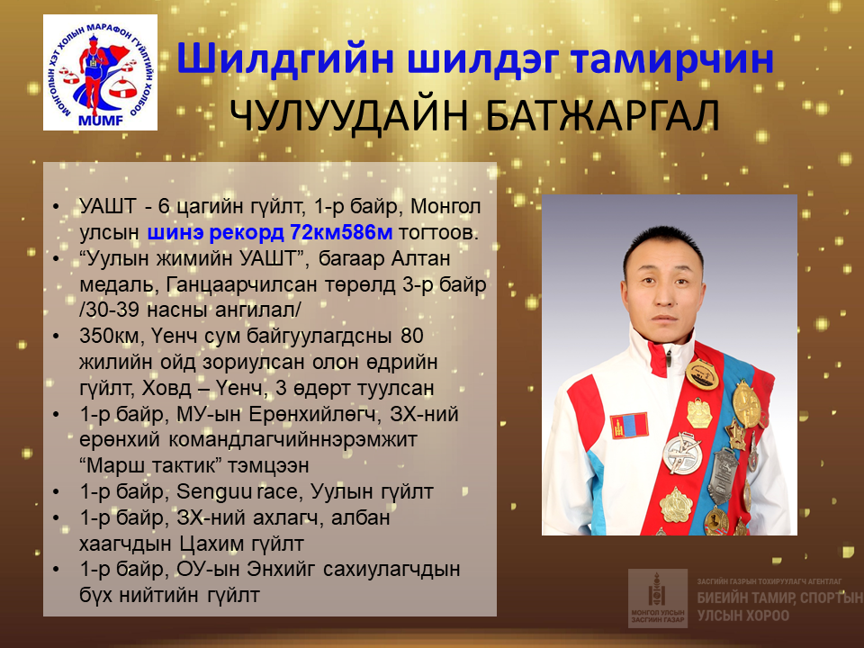 Засгийн газрын тохируулагч агентлаг-Биеийн тамир, спортын улсын хорооны “Биеийн тамирын Тэргүүний ажилтан” цол тэмдгээр тамирчин ОУХМ Ч.Батжаргал, ОУХМ Д.Гантулга нар,