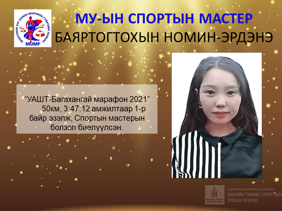 Мөн шинээр “Спортын мастер”-ын болзол биелүүлсэн Б.Номин-Эрдэнэ, Г.Бат-Эрдэнэ, “Спортын дэд мастер”-ын болзол биелүүлсэн Д.Дашням, Н.Лувсаншарав,
