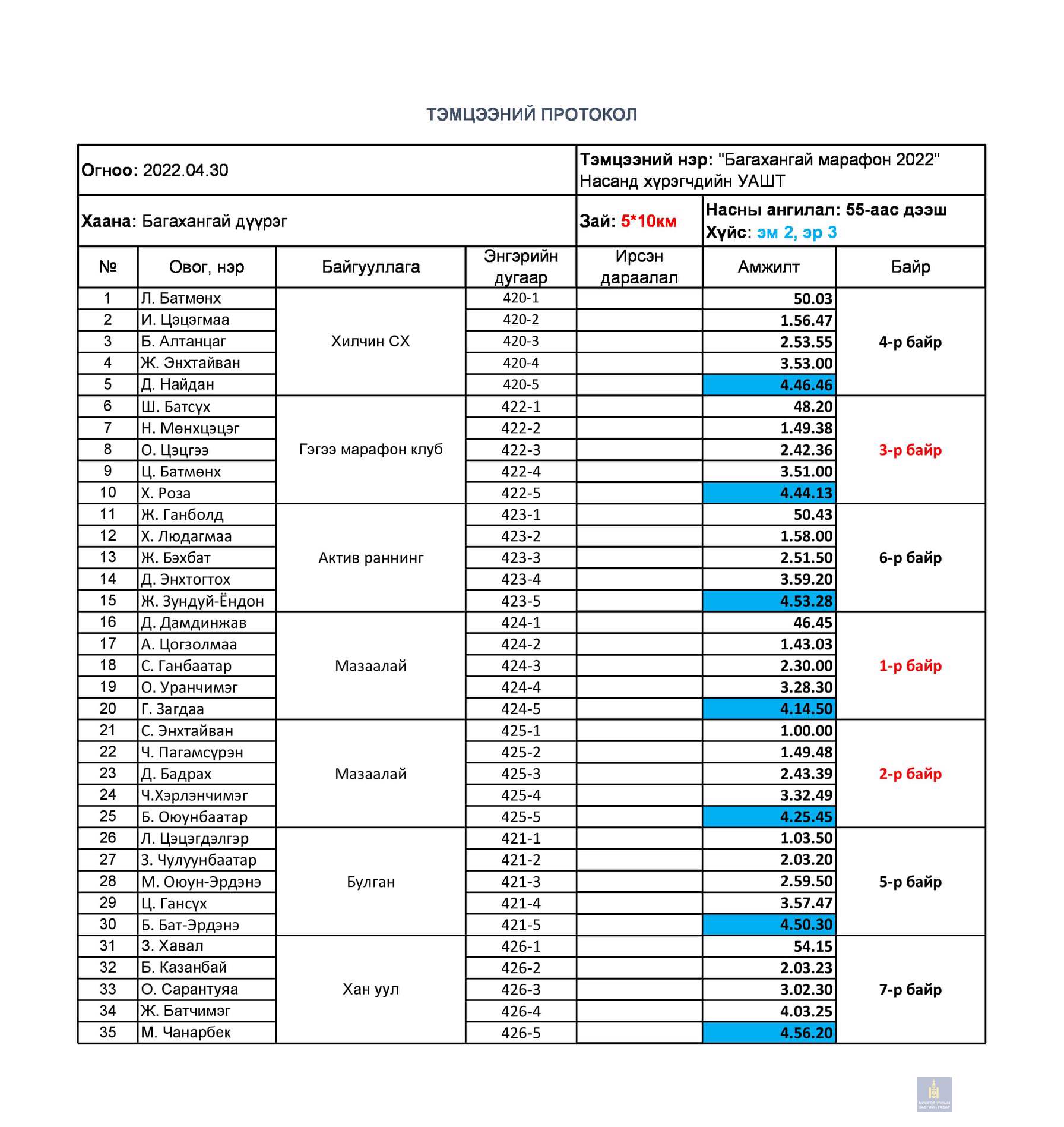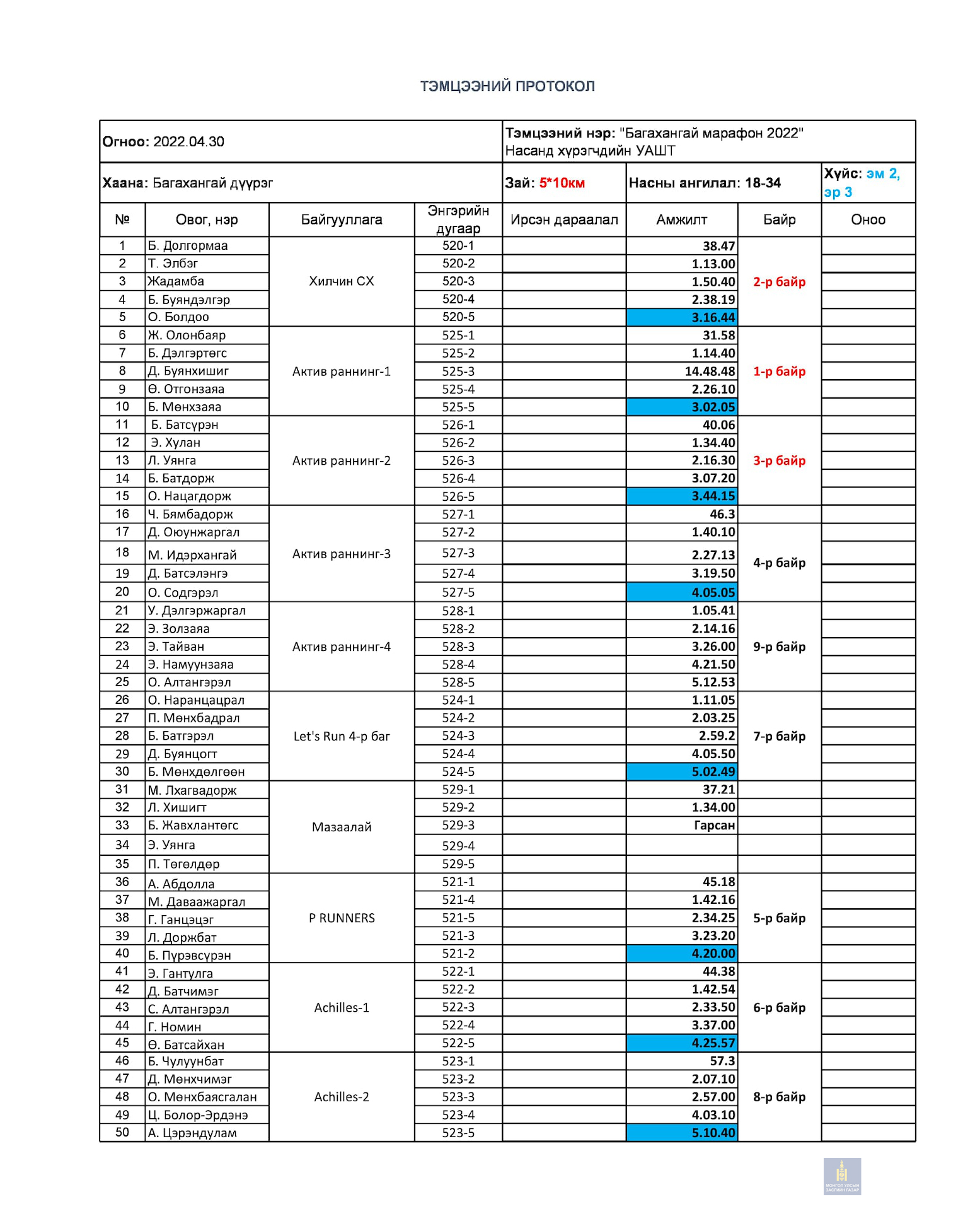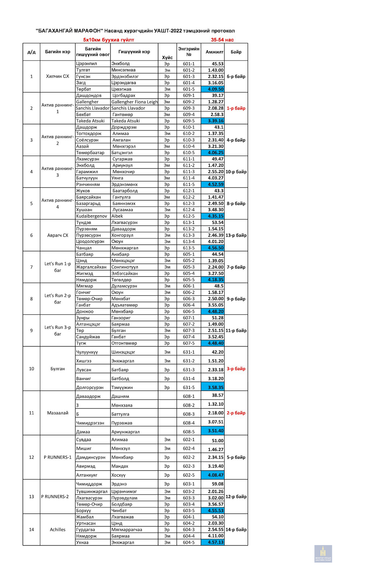 Багахангай 2022 - Насанд хүрэгчдийн УАШТ дүн
