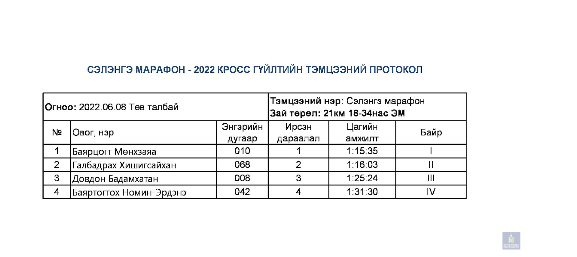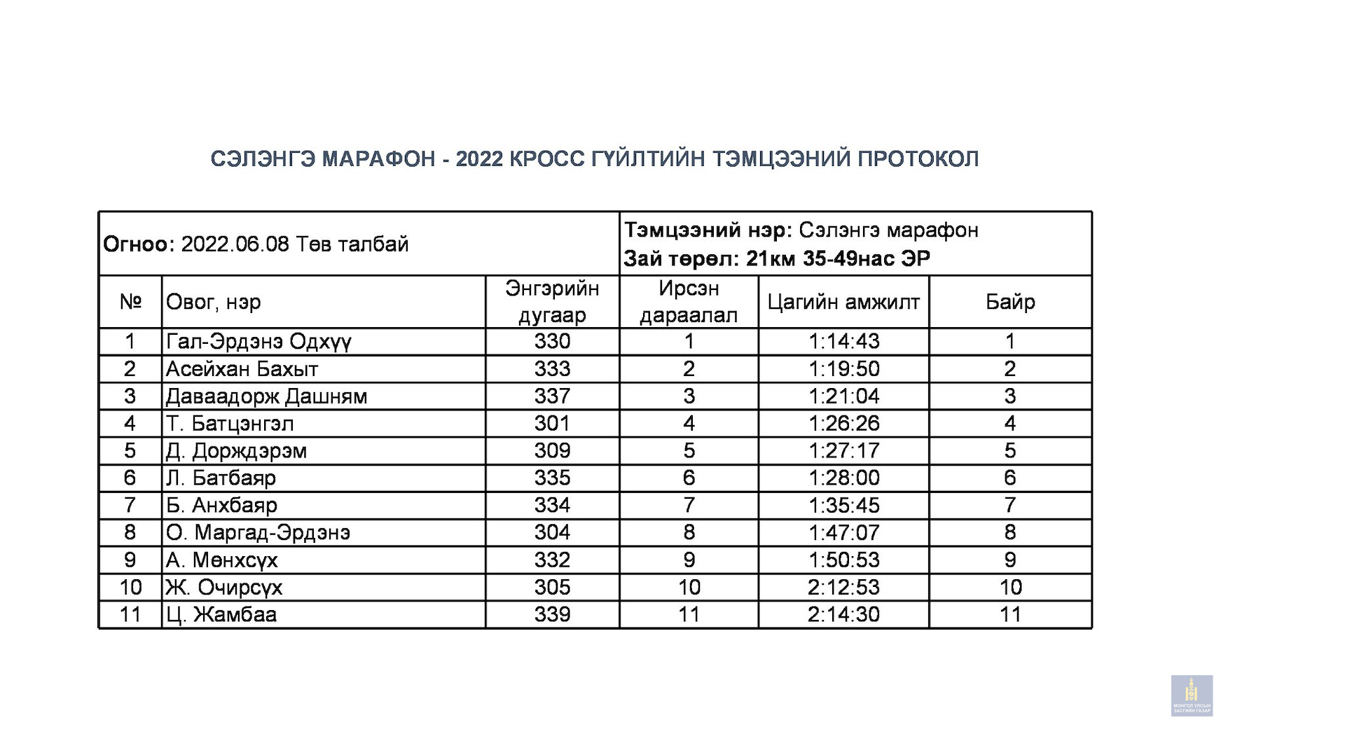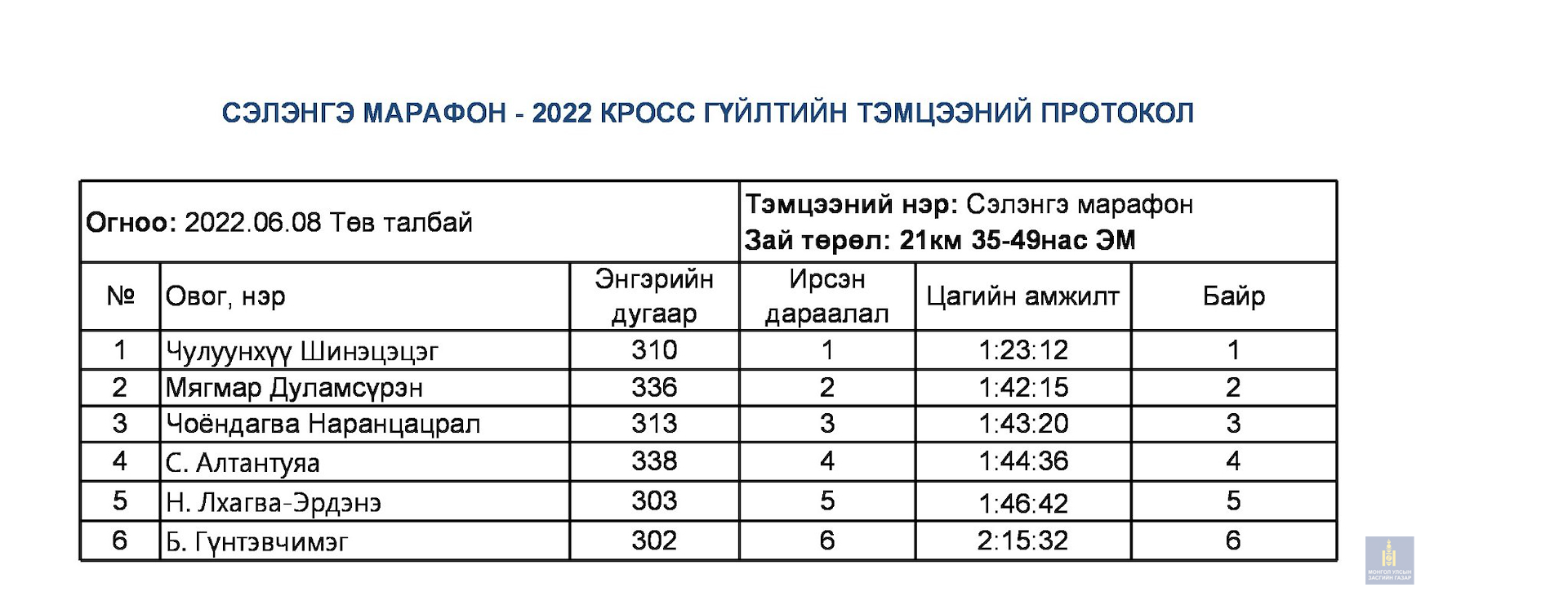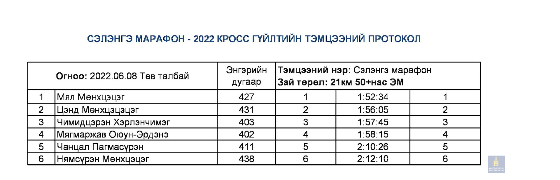Сэлэнгэ марафон 2022 тэмцээний дүн