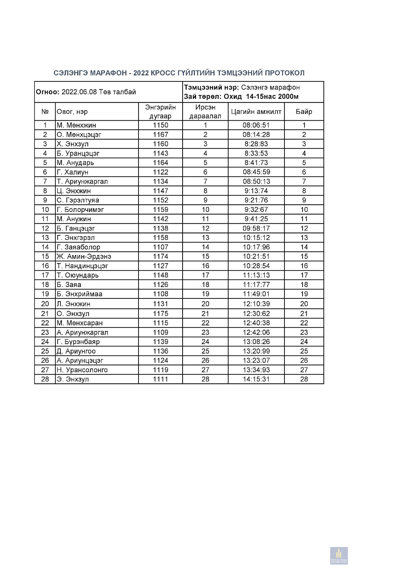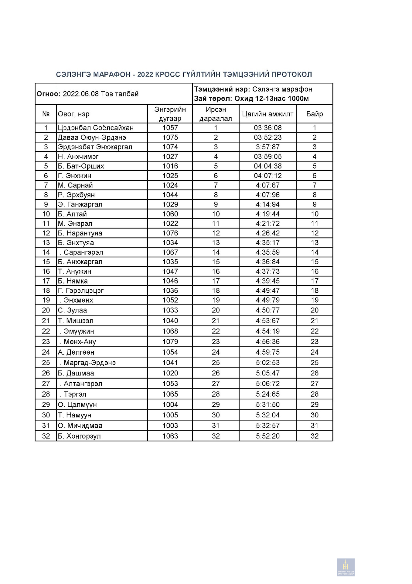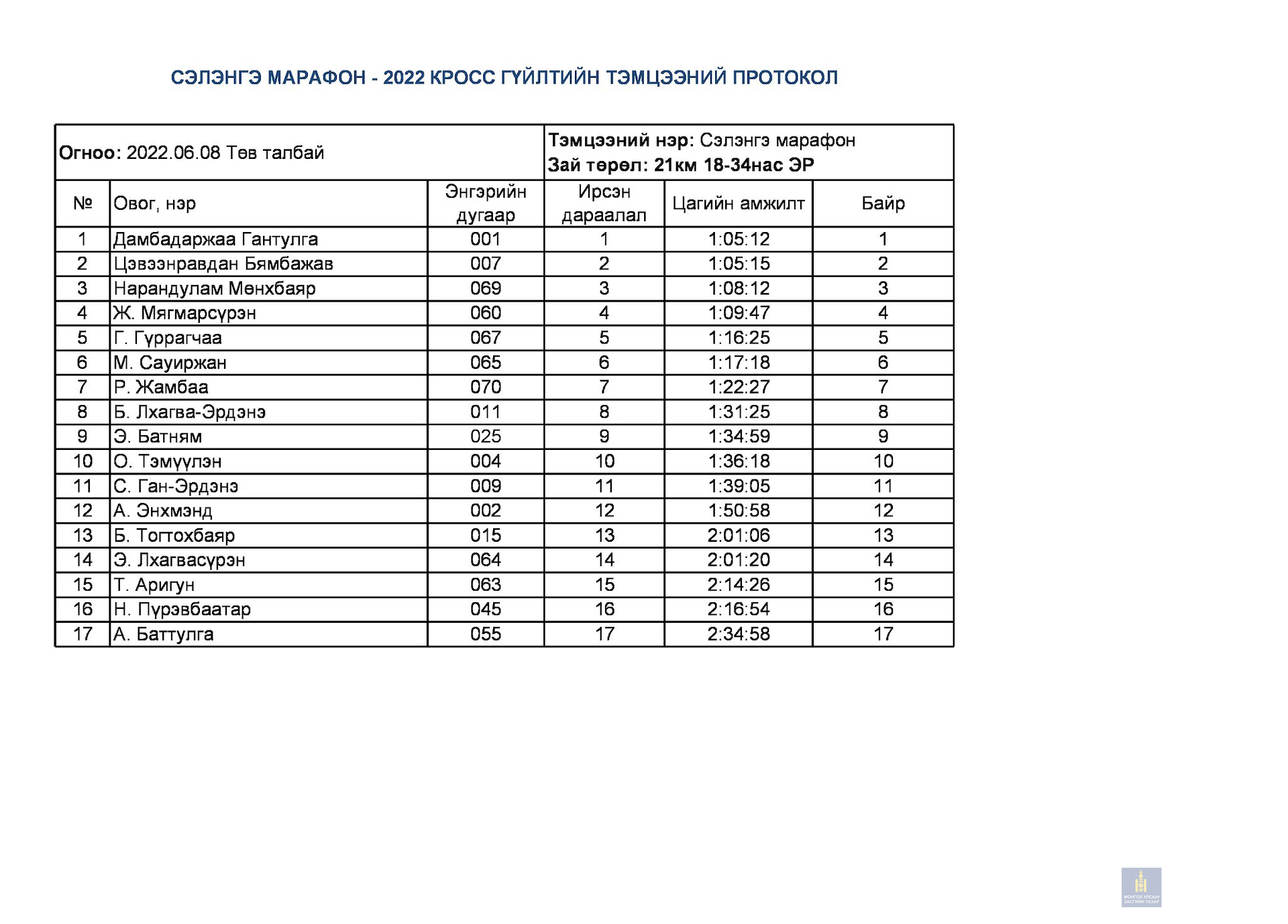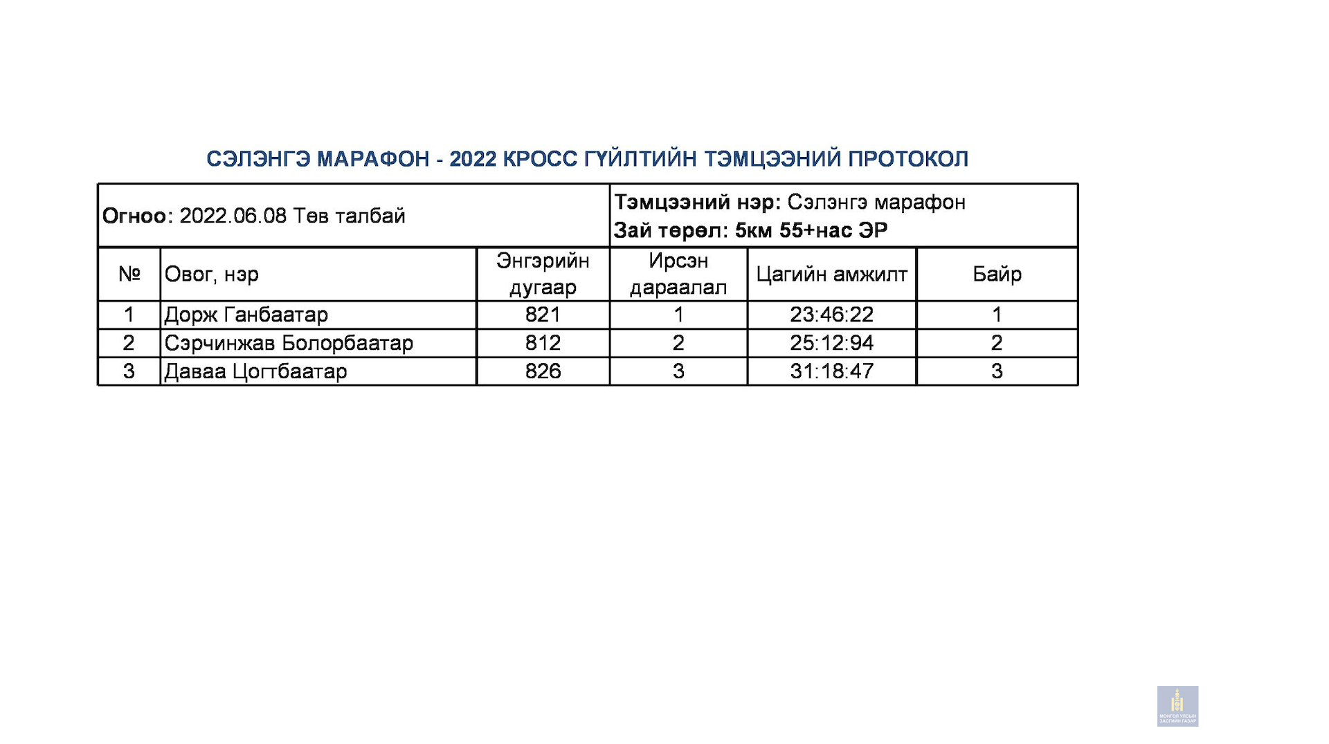 Сэлэнгэ марафон 2022 тэмцээний дүн