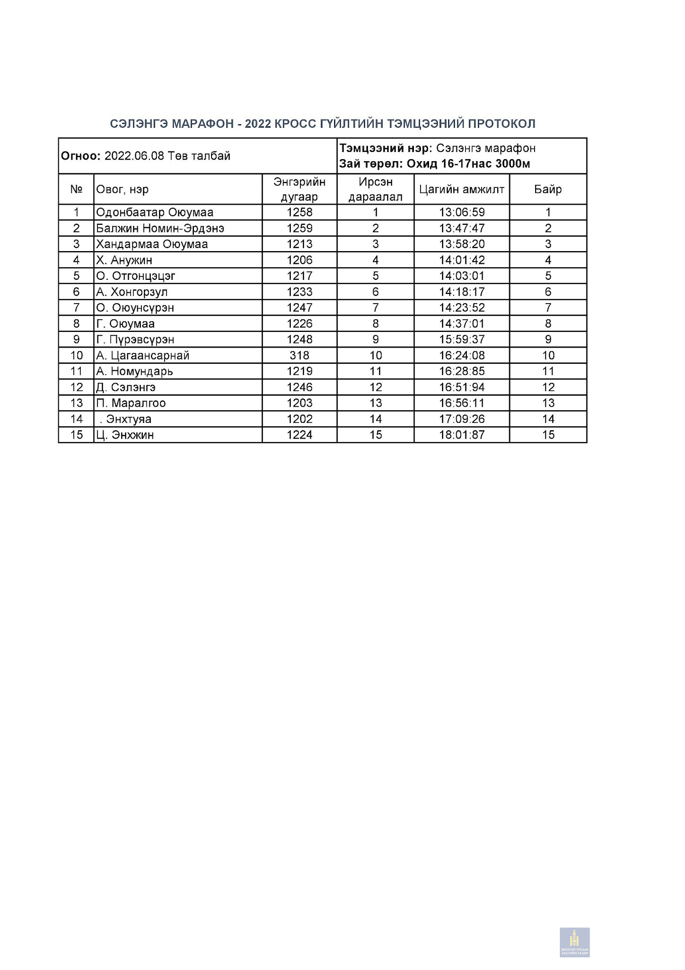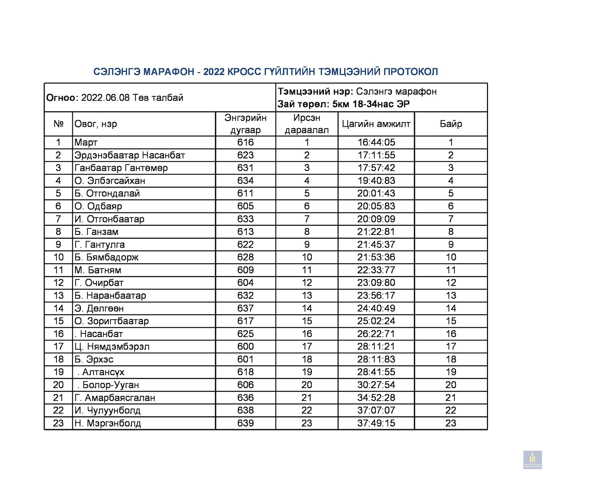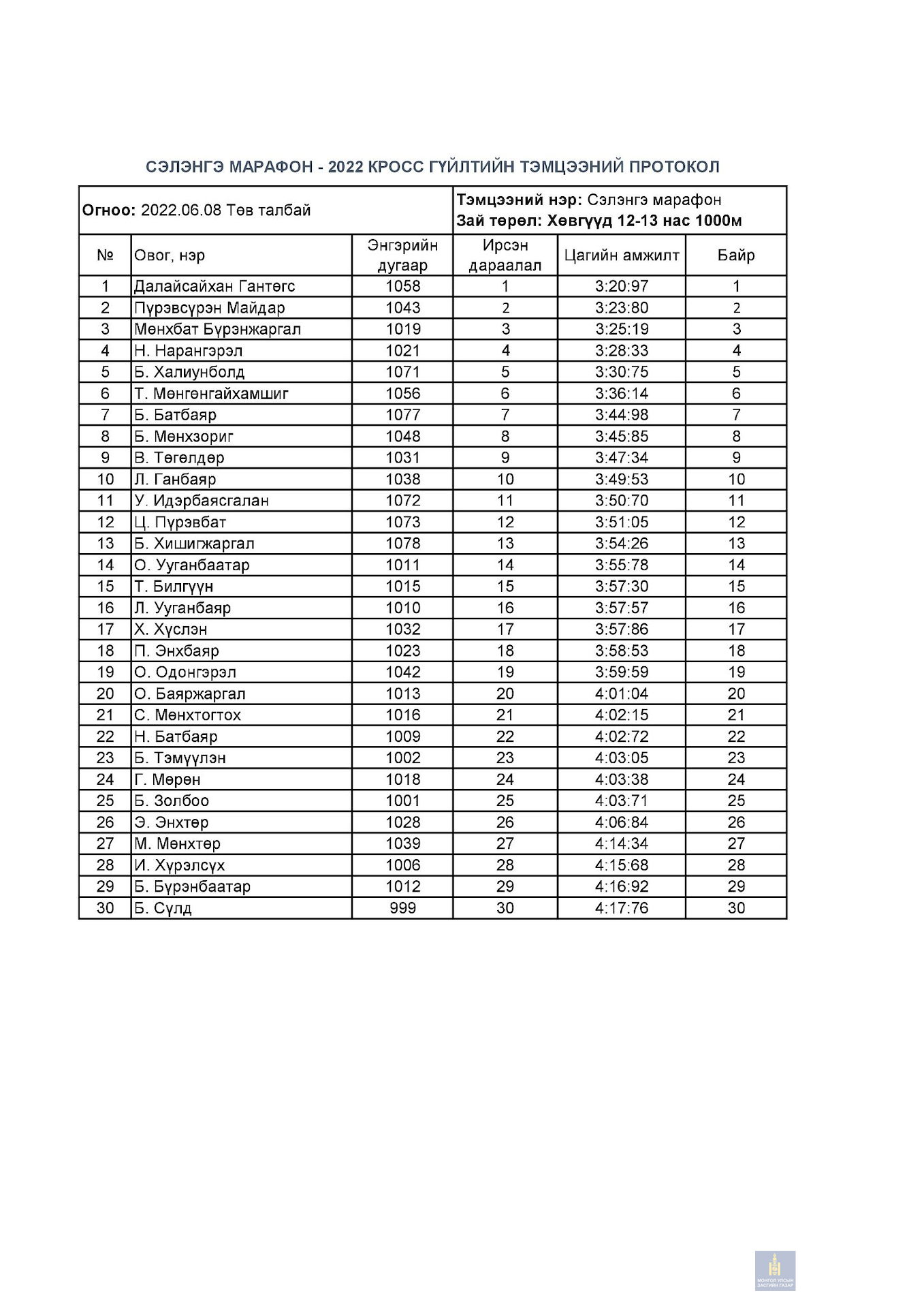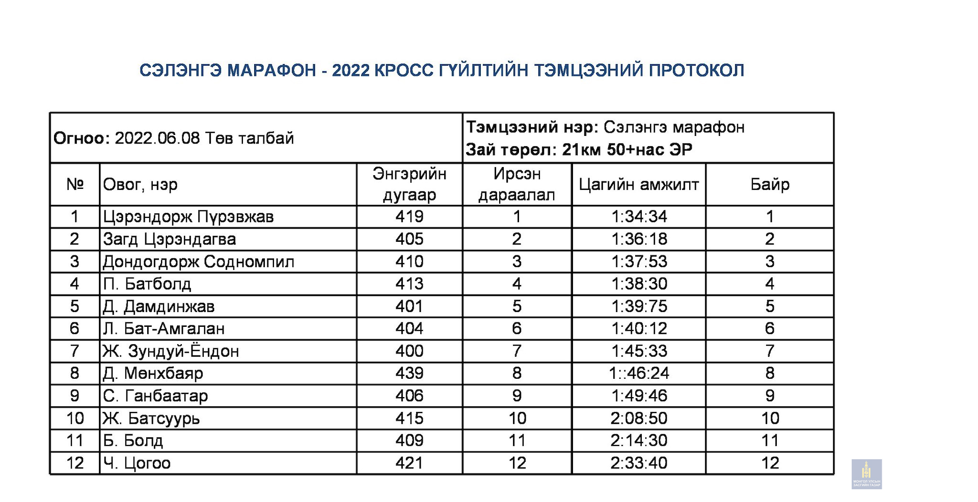 Сэлэнгэ марафон 2022 тэмцээний дүн