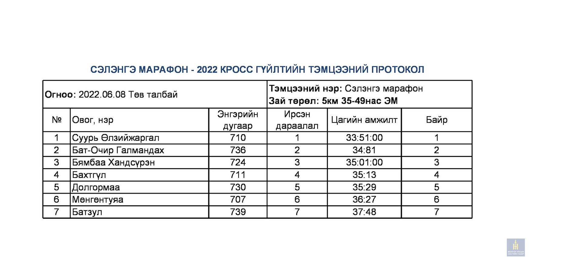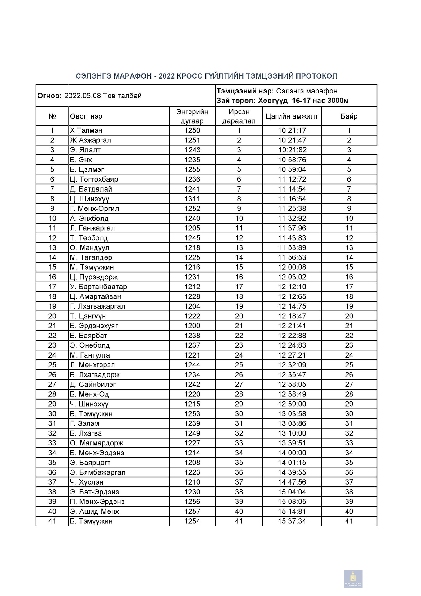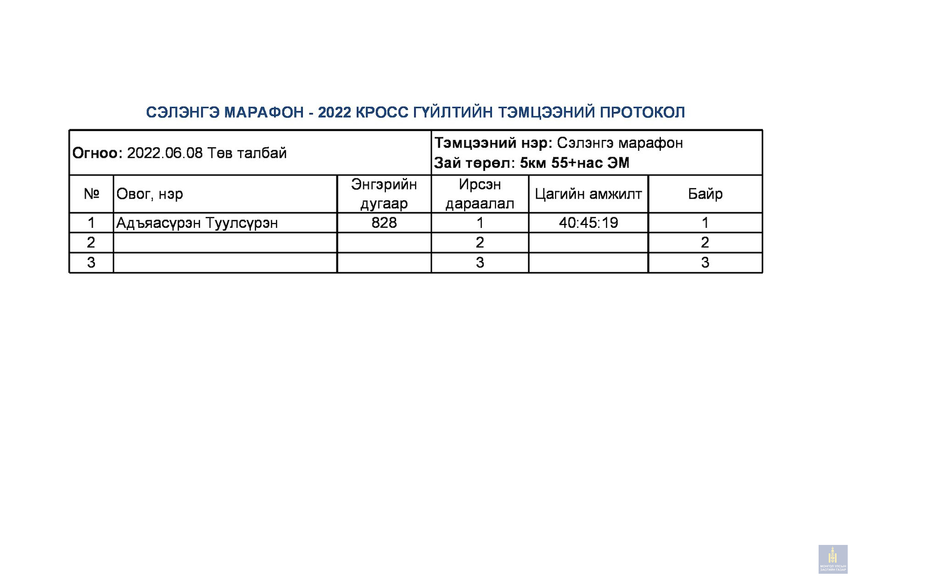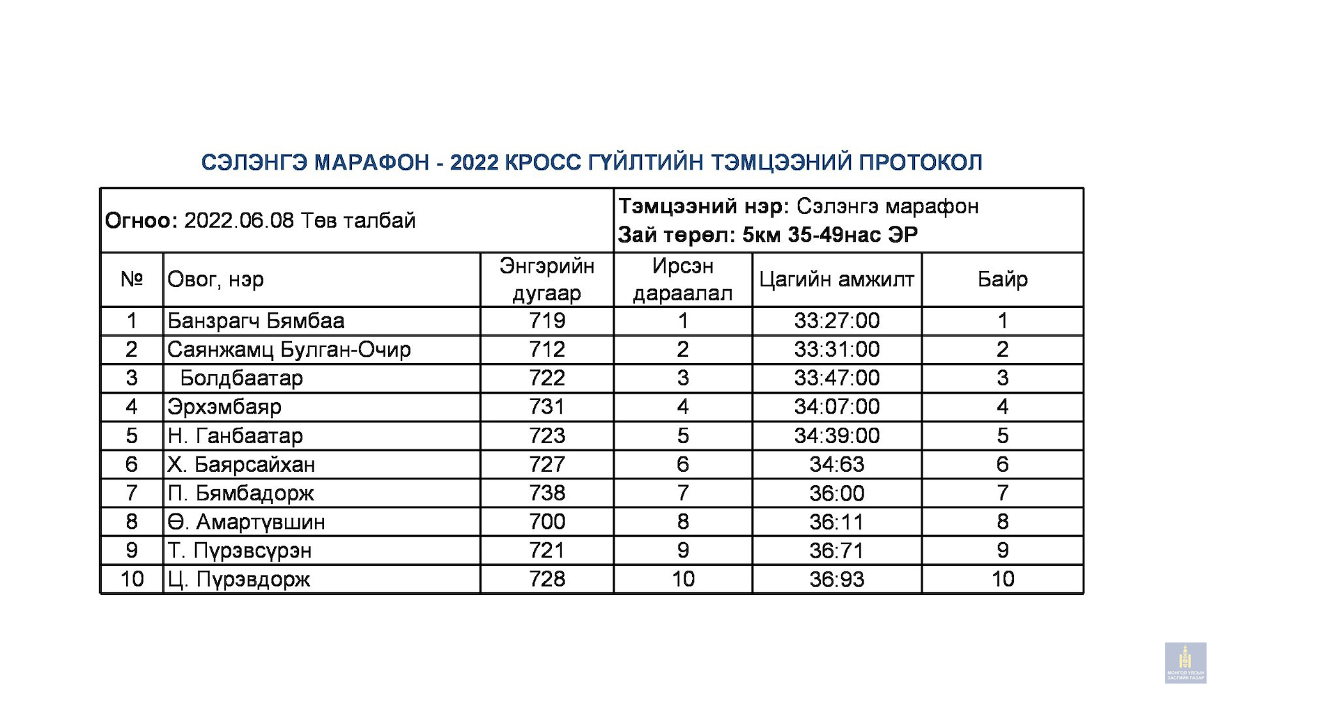 Сэлэнгэ марафон 2022 тэмцээний дүн
