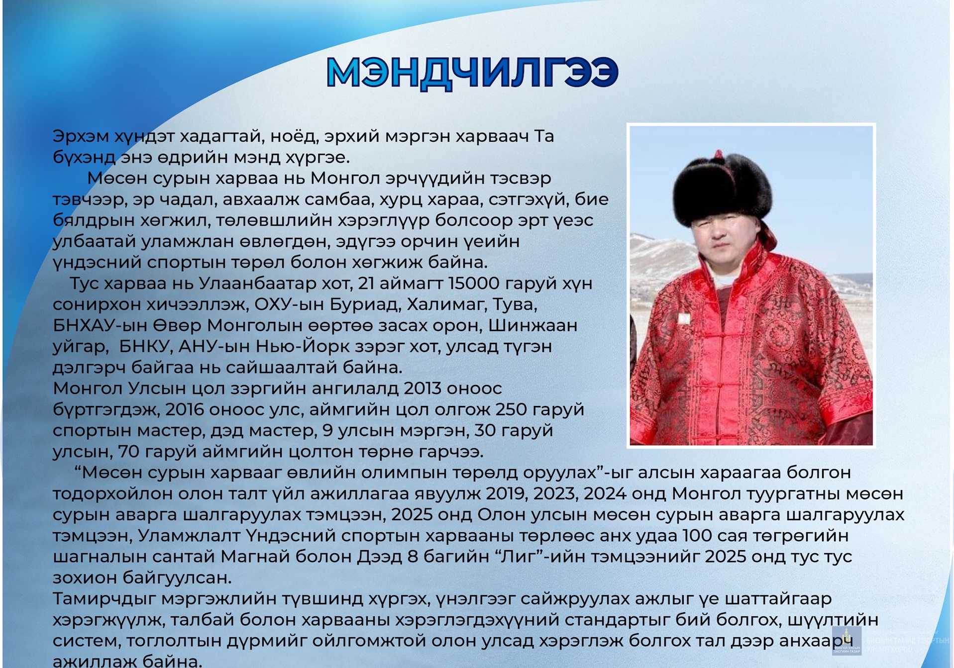 МОНГОЛЫН МӨСӨН СУРЫН ХОЛБООНЫ ЕРӨНХИЙЛӨГЧИЙН МЭНДЧИЛГЭЭ